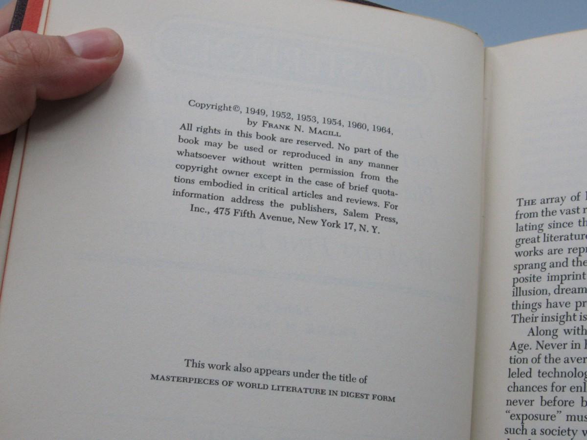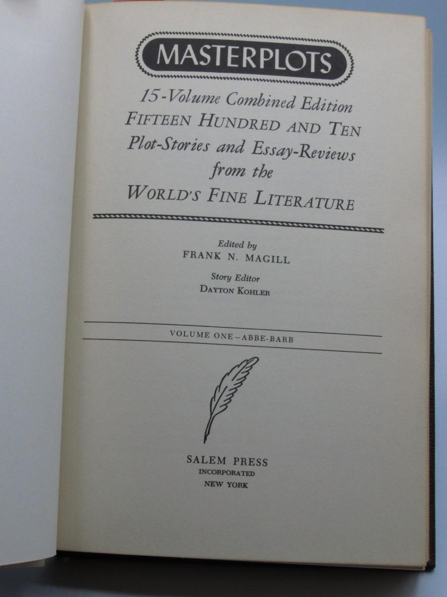 Vintage Book Masterplots Plot-Stories and Essay Review From the World's Fine Literature Volume One