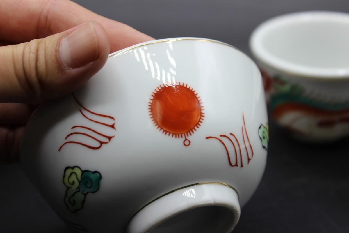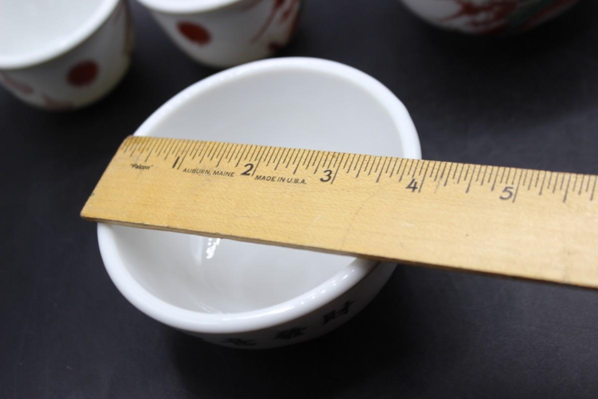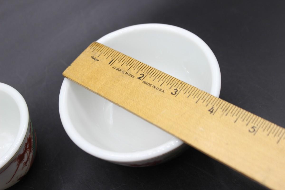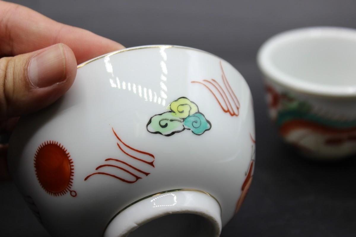 Vintage Hand Painted Porcelain Chinese Red Dragon Art Motif Tea Drinking Cups