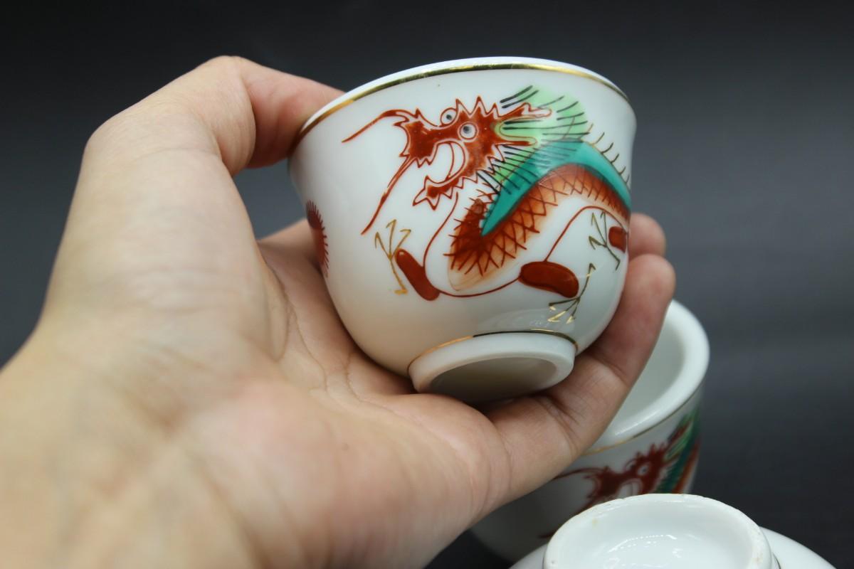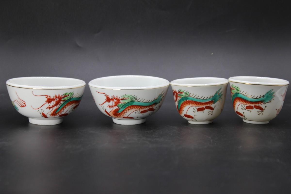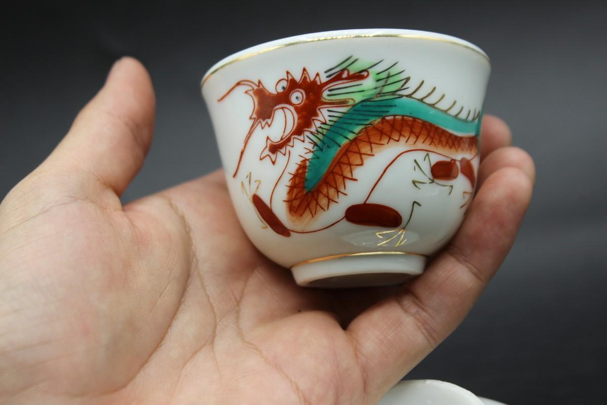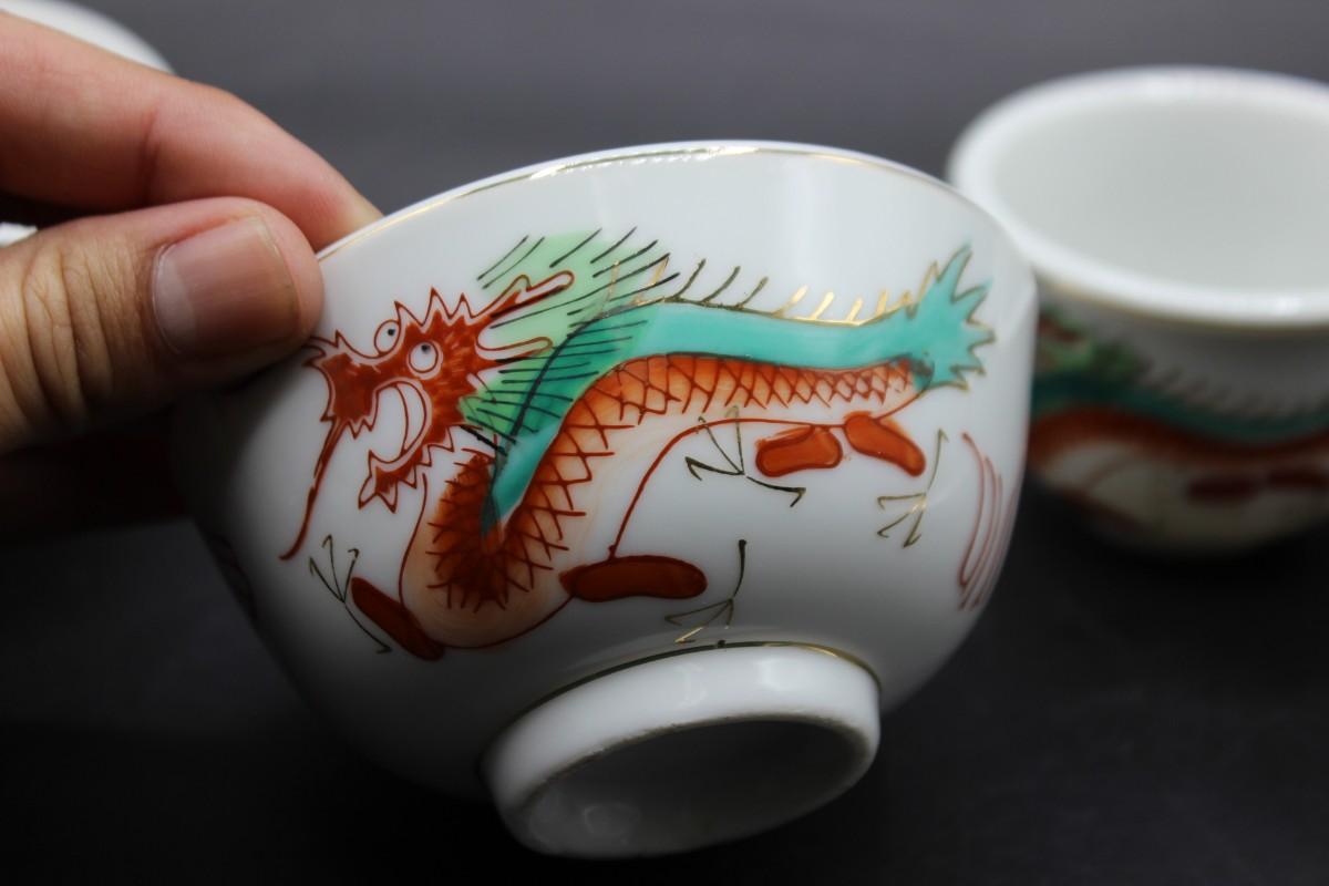 Vintage Hand Painted Porcelain Chinese Red Dragon Art Motif Tea Drinking Cups