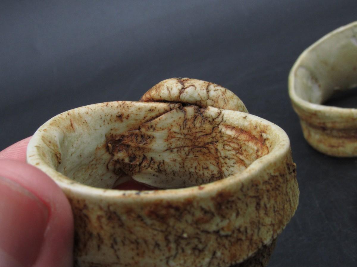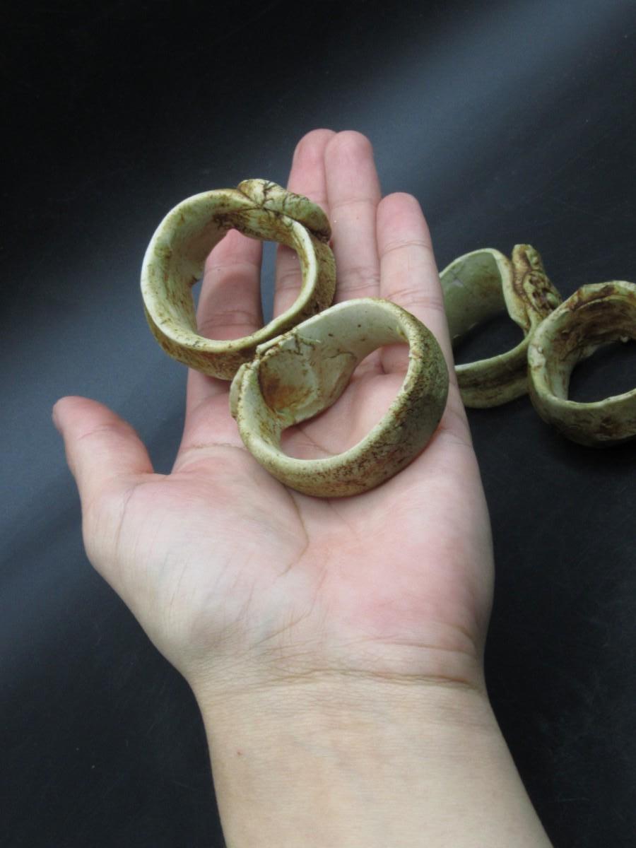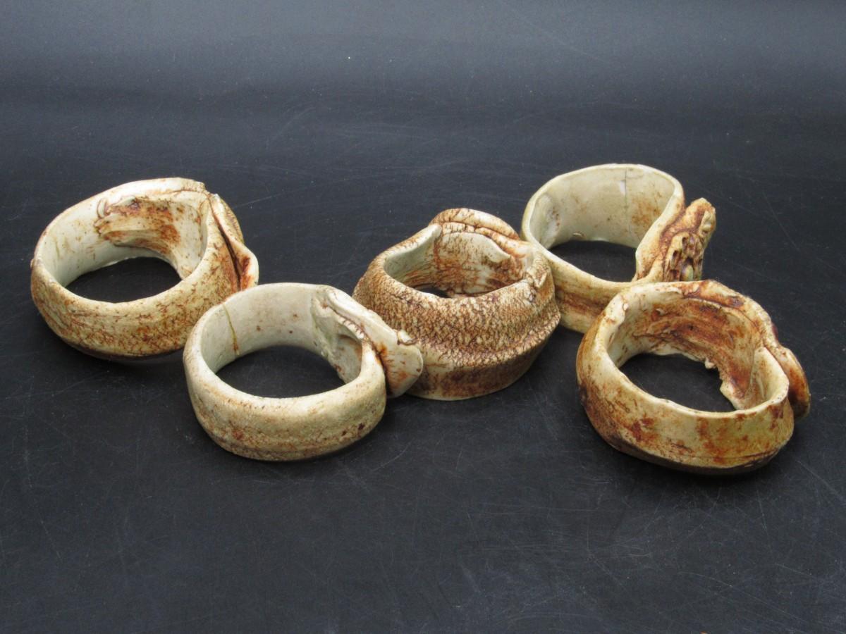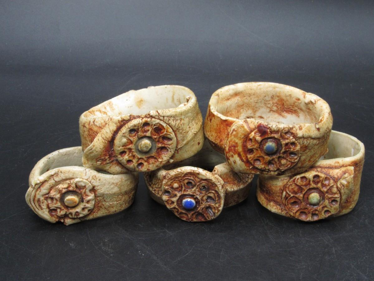 Vintage Textured Pottery Art Ceramic Clay Medallion Dial Motif Napkin Ring Holders