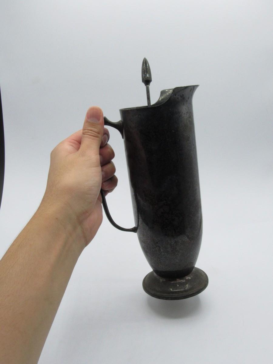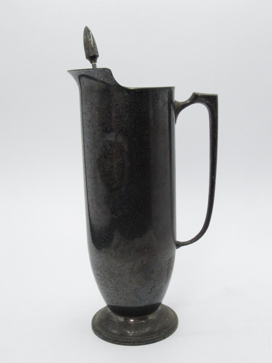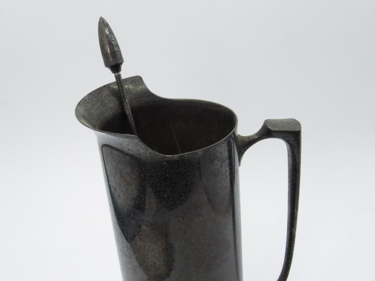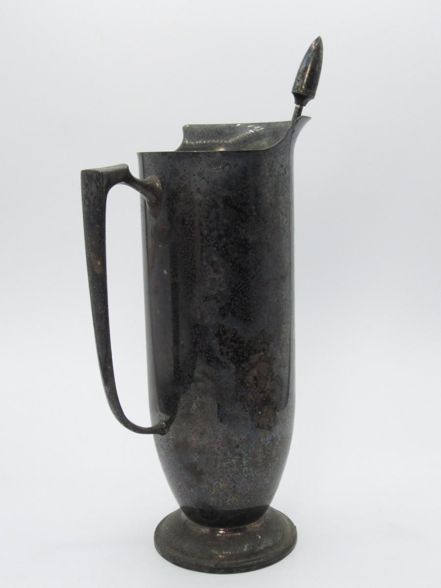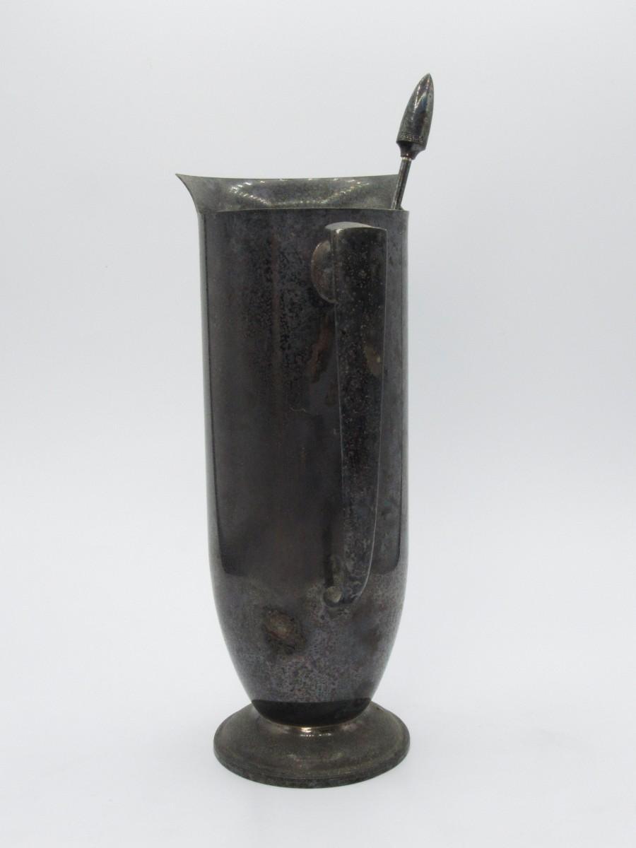 Vintage Art Deco Black Plated Pitcher Drink Mixer with Mixing Spoon