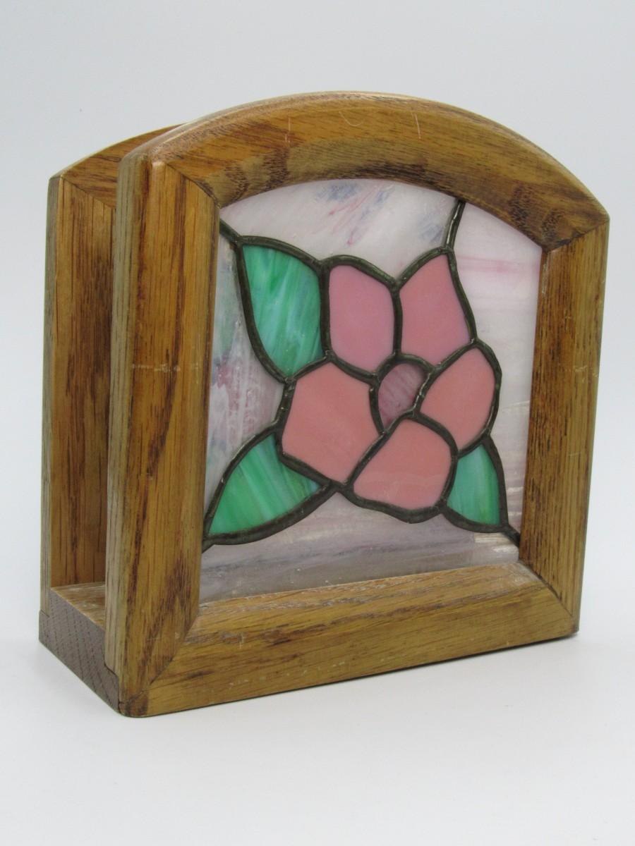 Vintage Clarity Kitchen Style Pink Rose Glass Cottagecore Napkin Holder