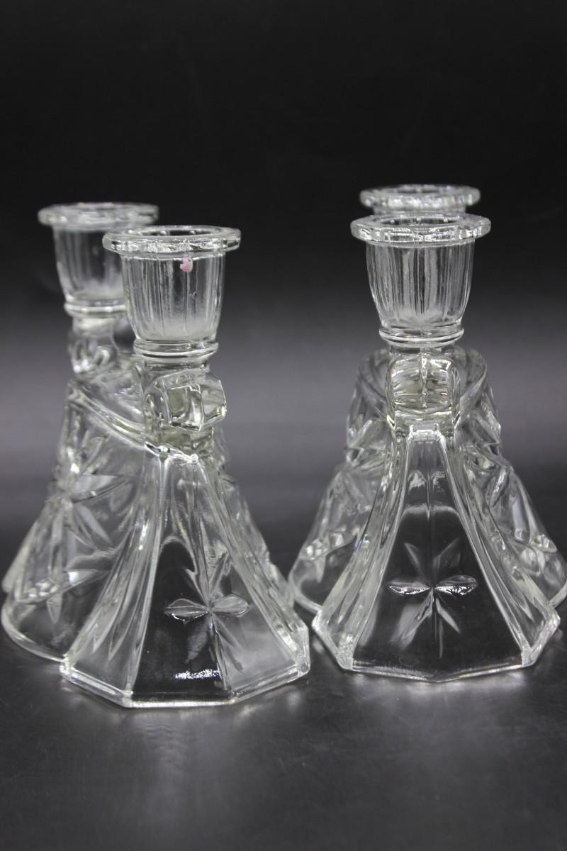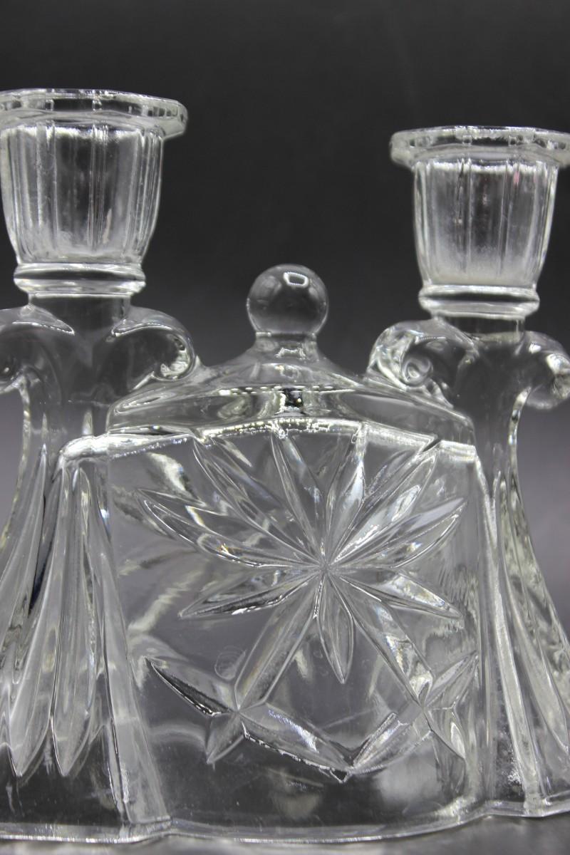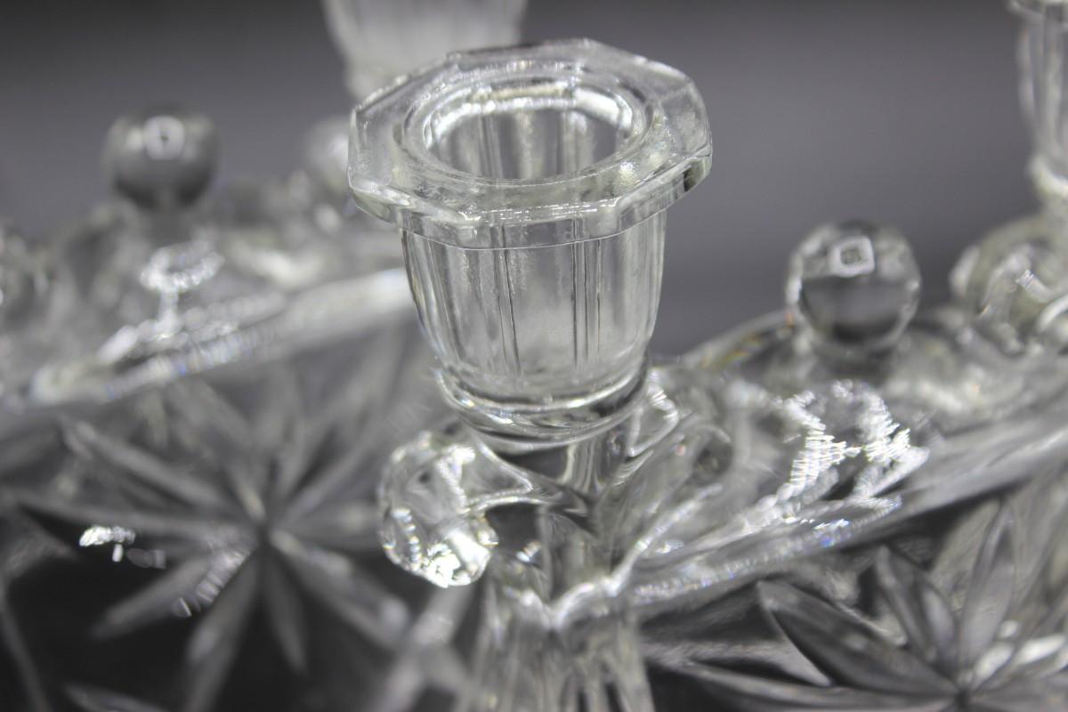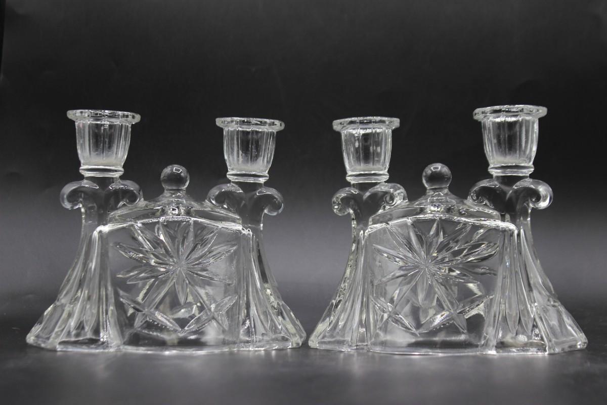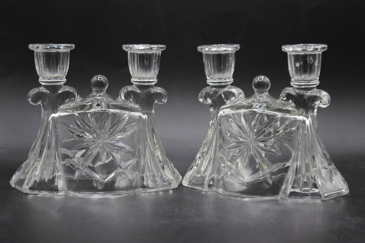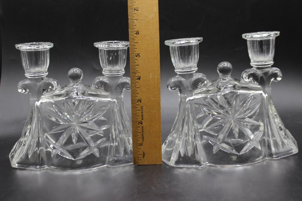 Pair of Vintage Anchor Hocking MCM Clear Cut Glass Double Candle Holders