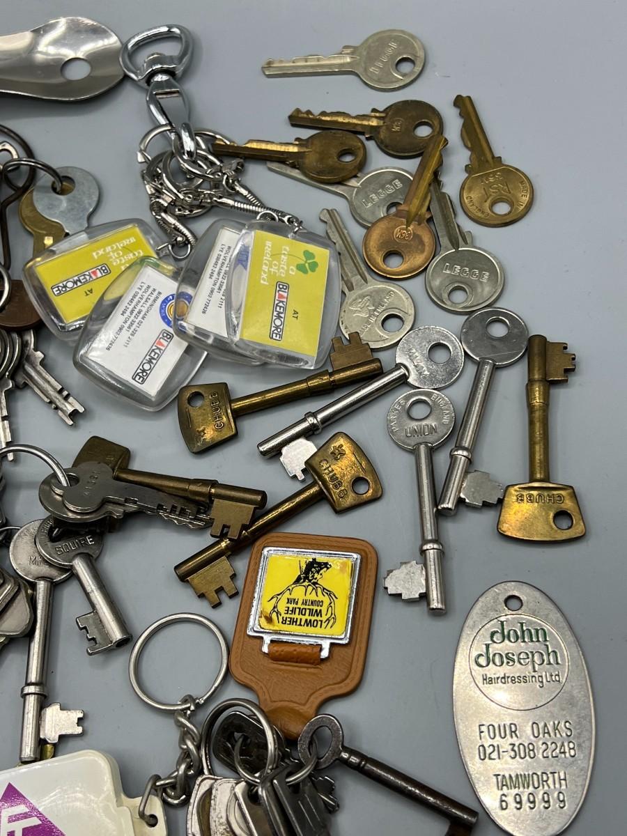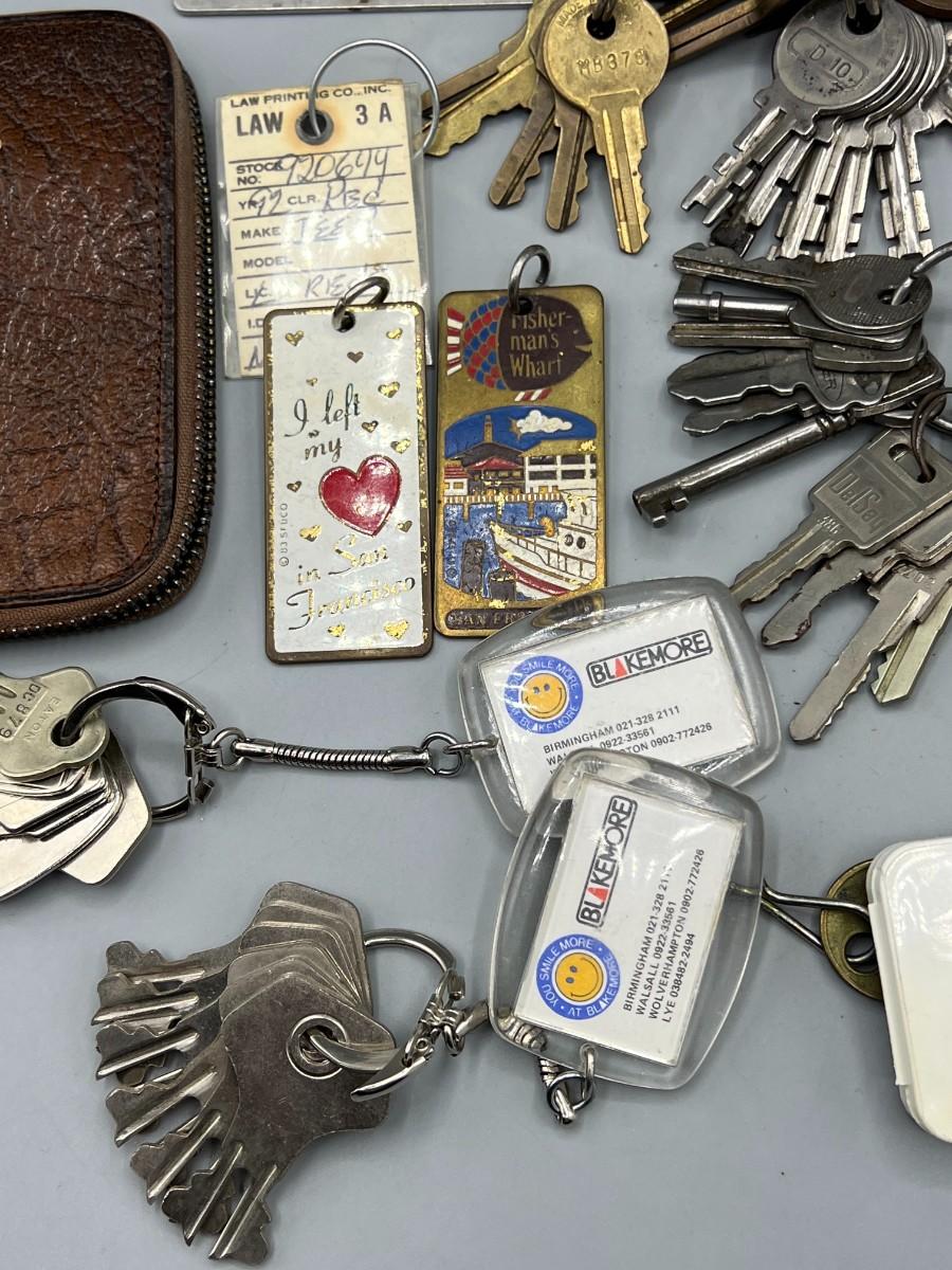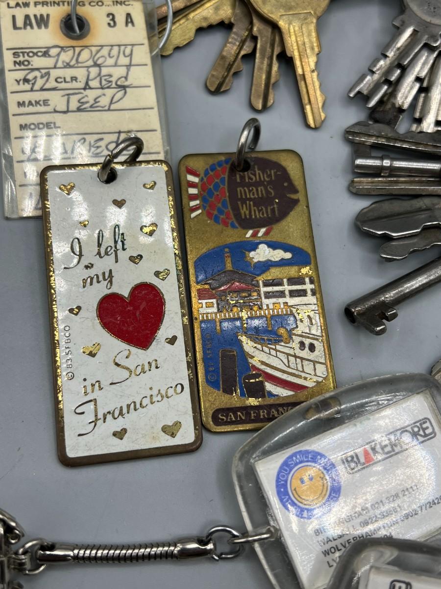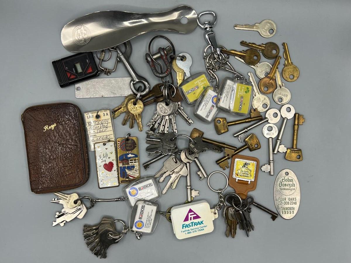 Mixed Lot of Vintage Old Keys and Keychains. Different styles of keys and keychains.