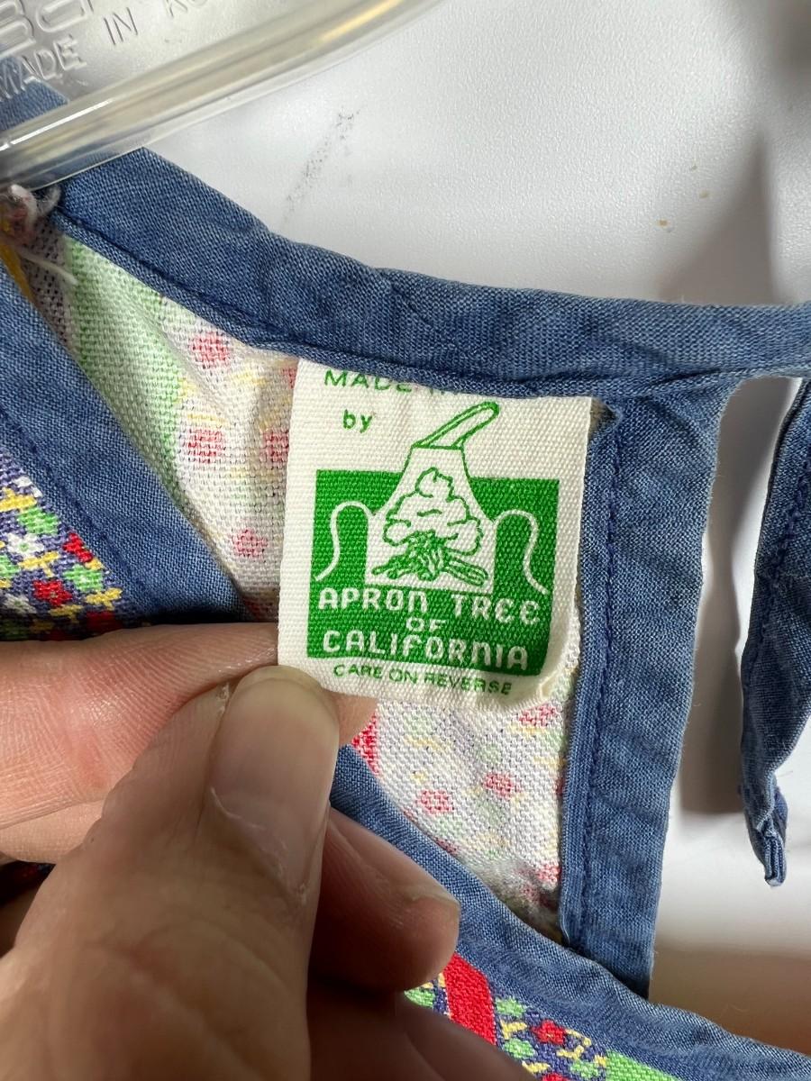 Vintage Colorful Striped Smock Apron Tree of California. In good vintage condition. Ties in the back.