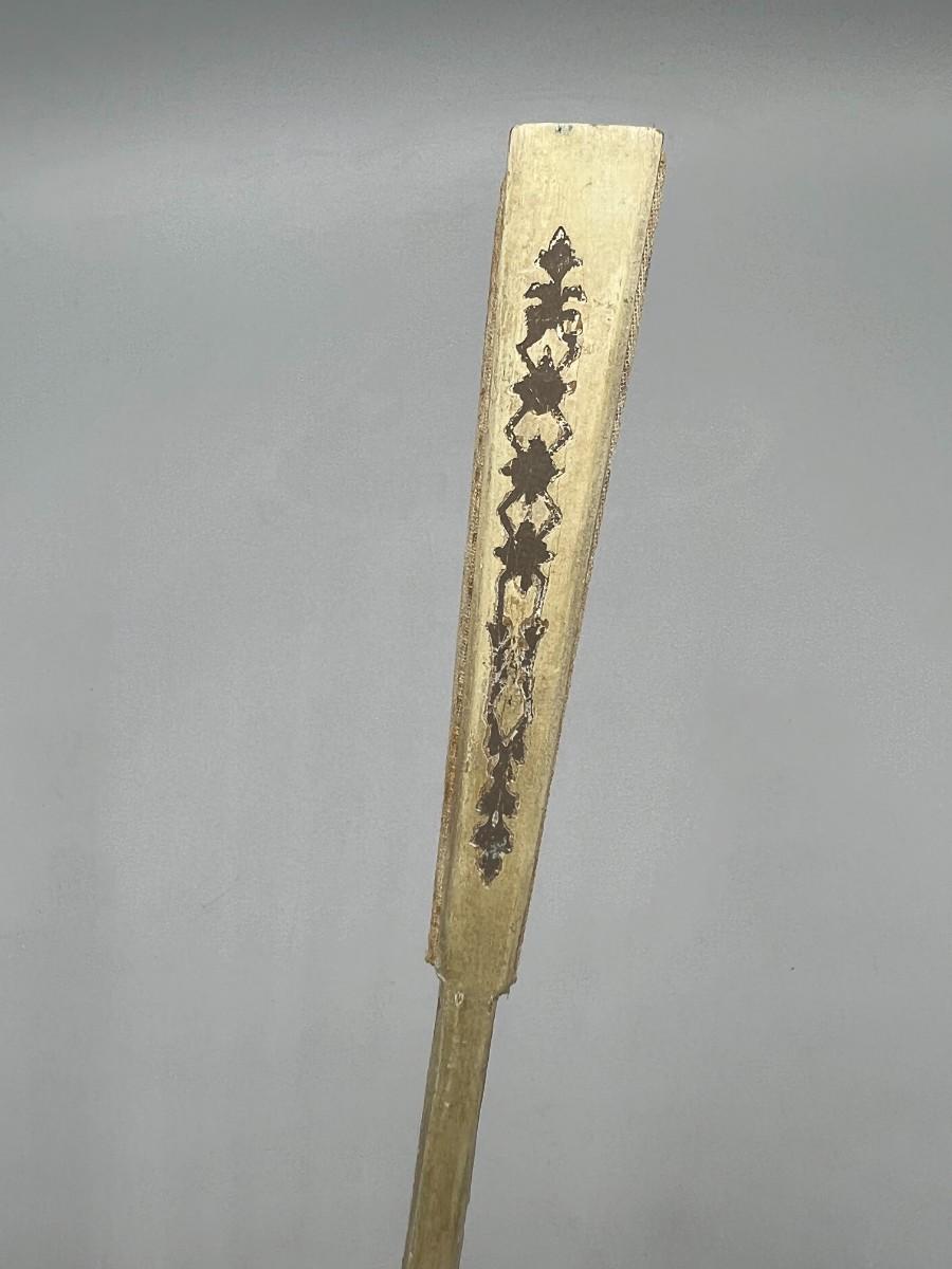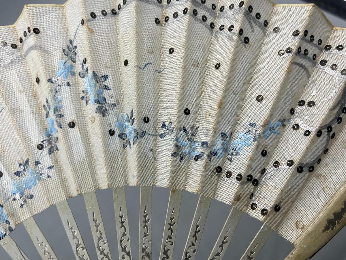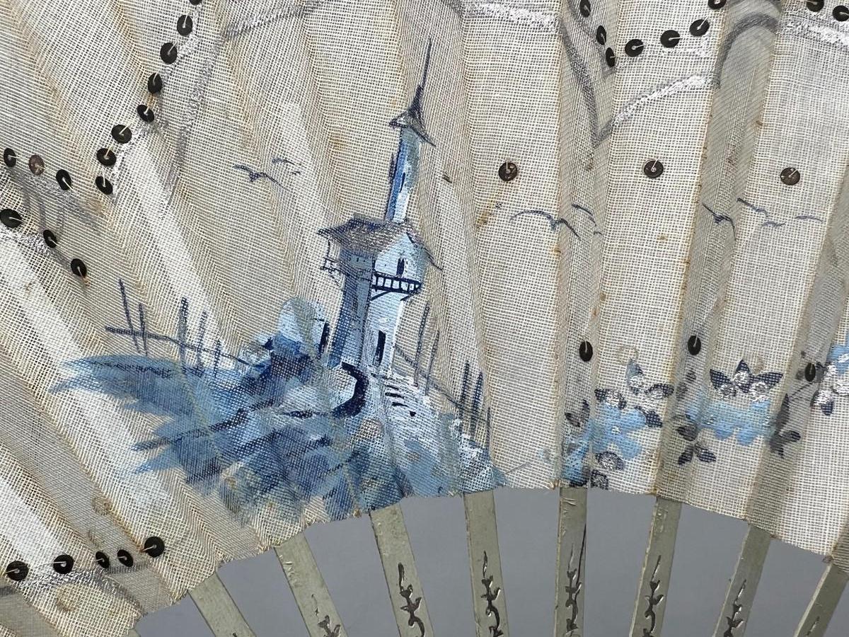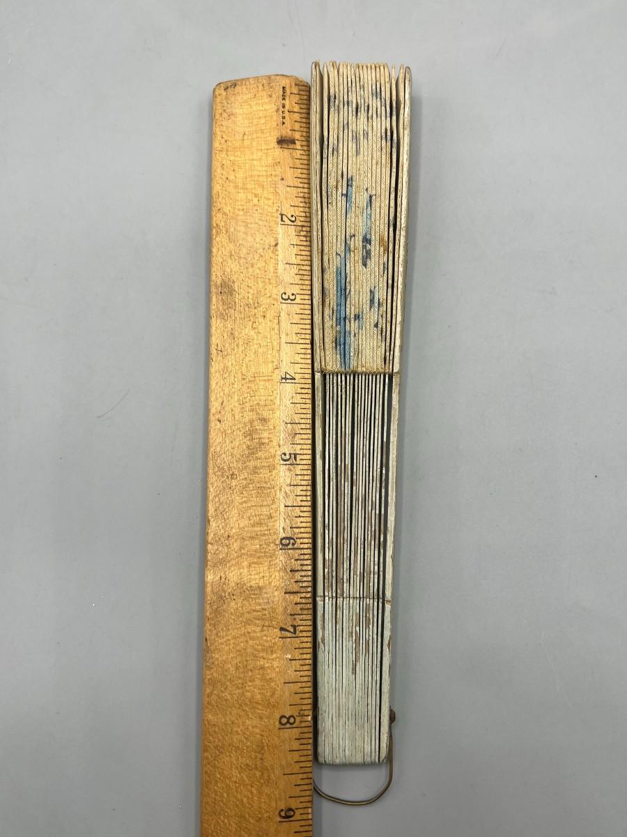There is some light antique wear to the fan, but there is no significant damage and is in overall good collectible or displayable condition. Check pictures for more details and for sizing.