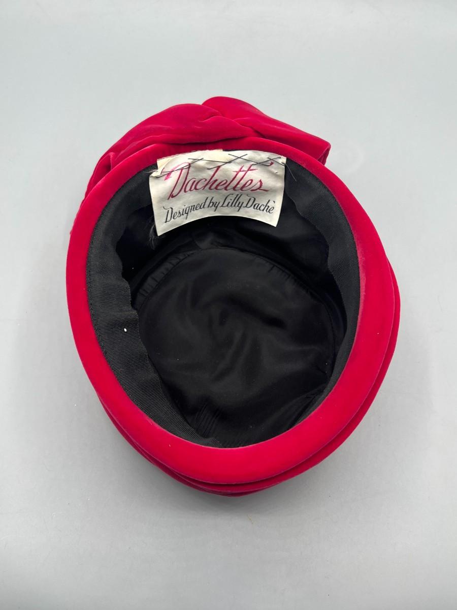 Antique Dachettes by Lilly Dache Red Hollywood Regency Fashioable Flapper Turban Cap