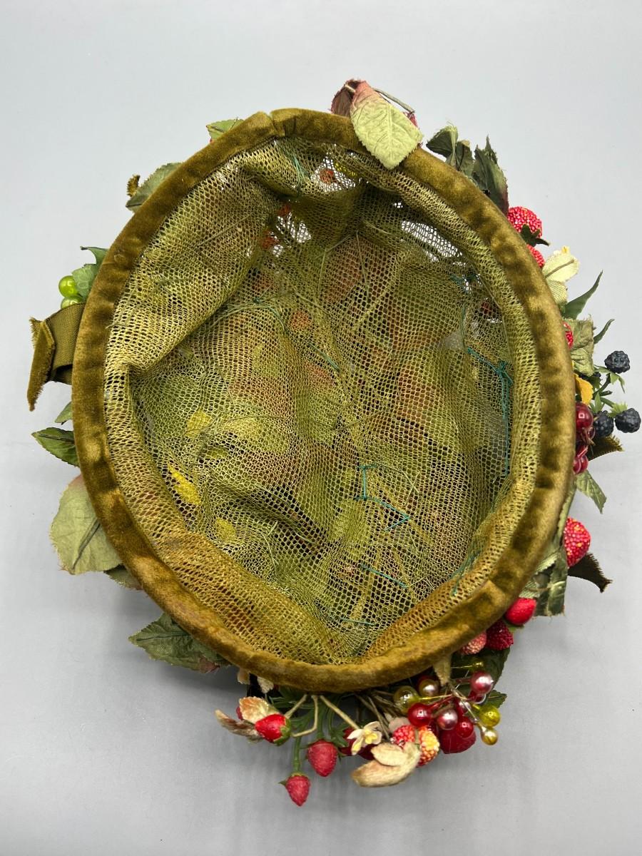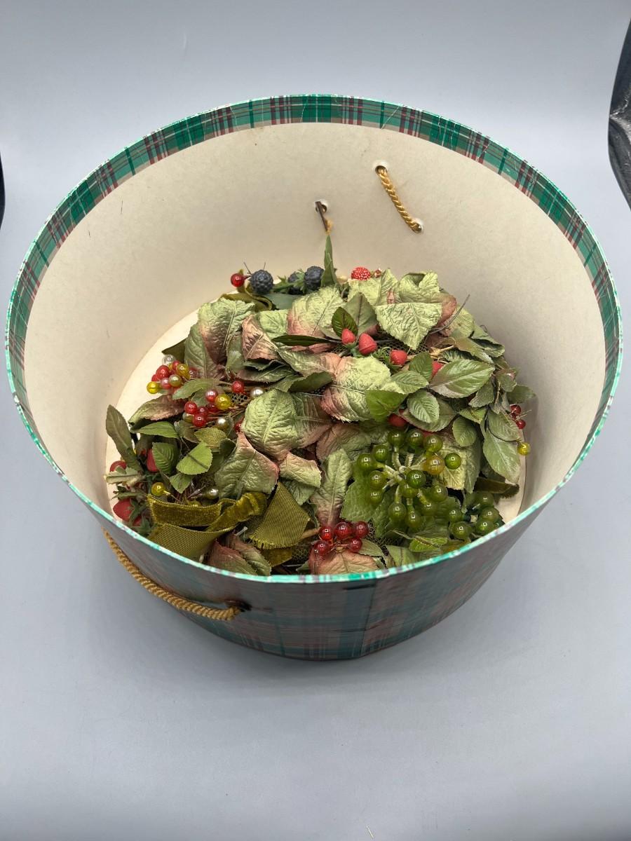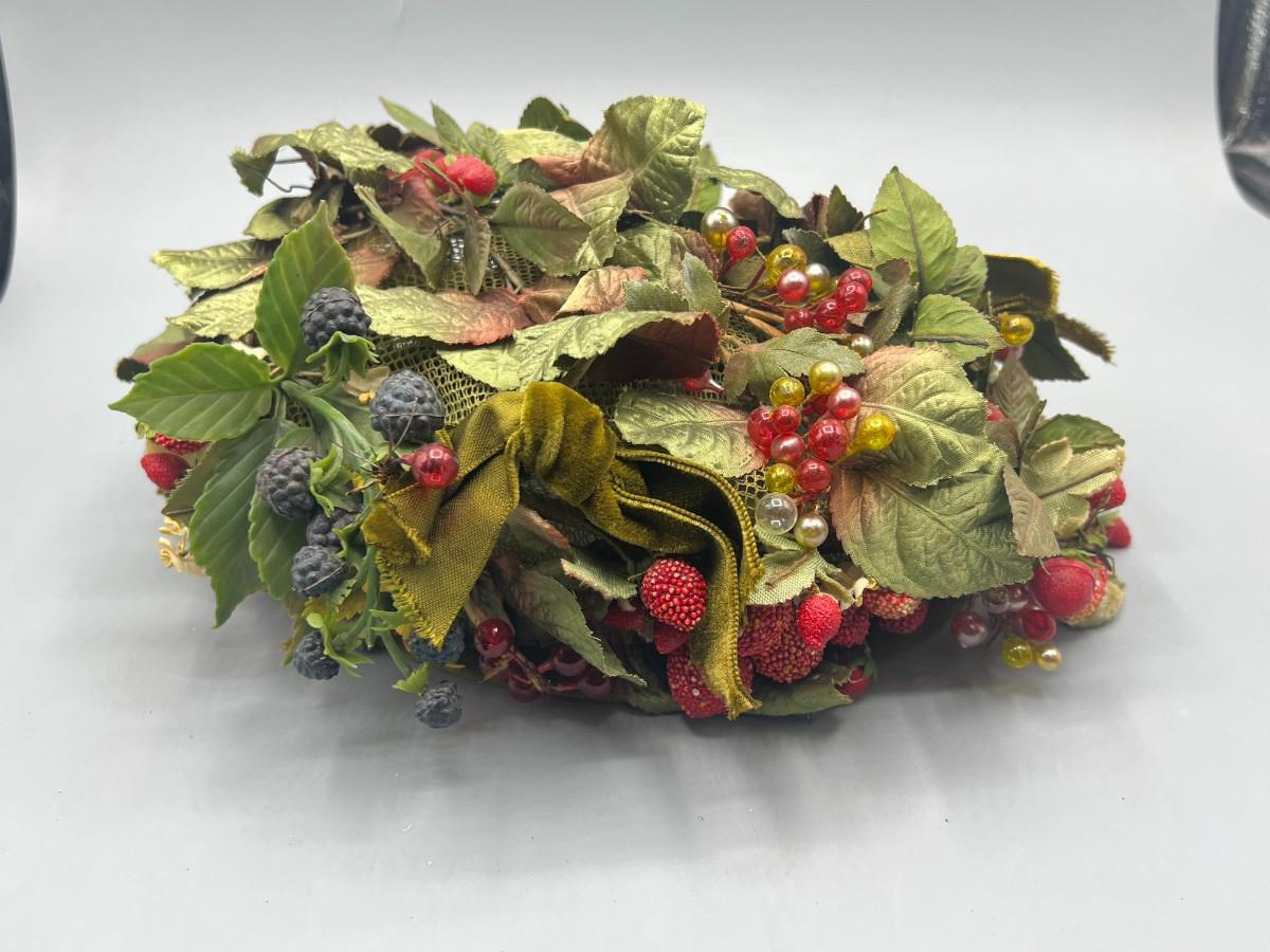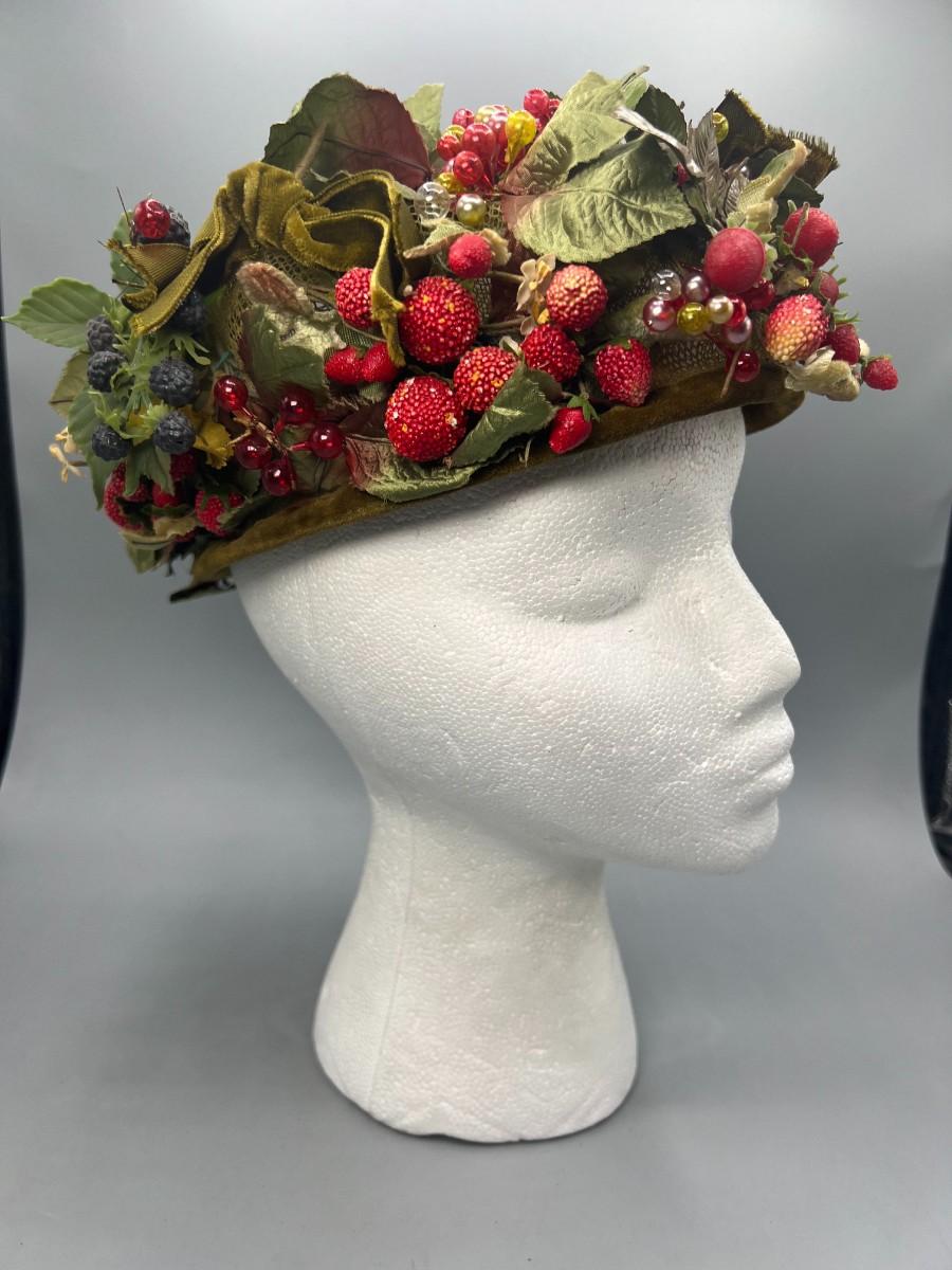 Antique Faux Foliage Berries Leaves Fashionable Hollywood Regency Hat Cap with Hat Box
