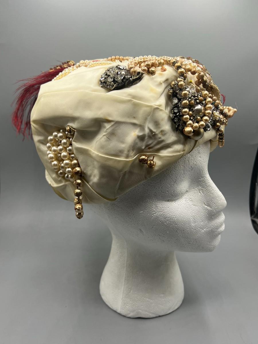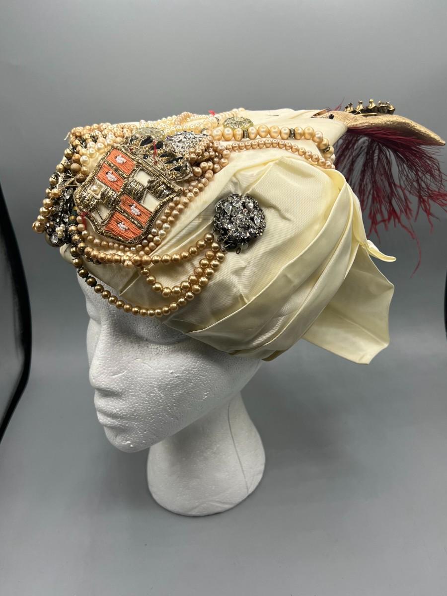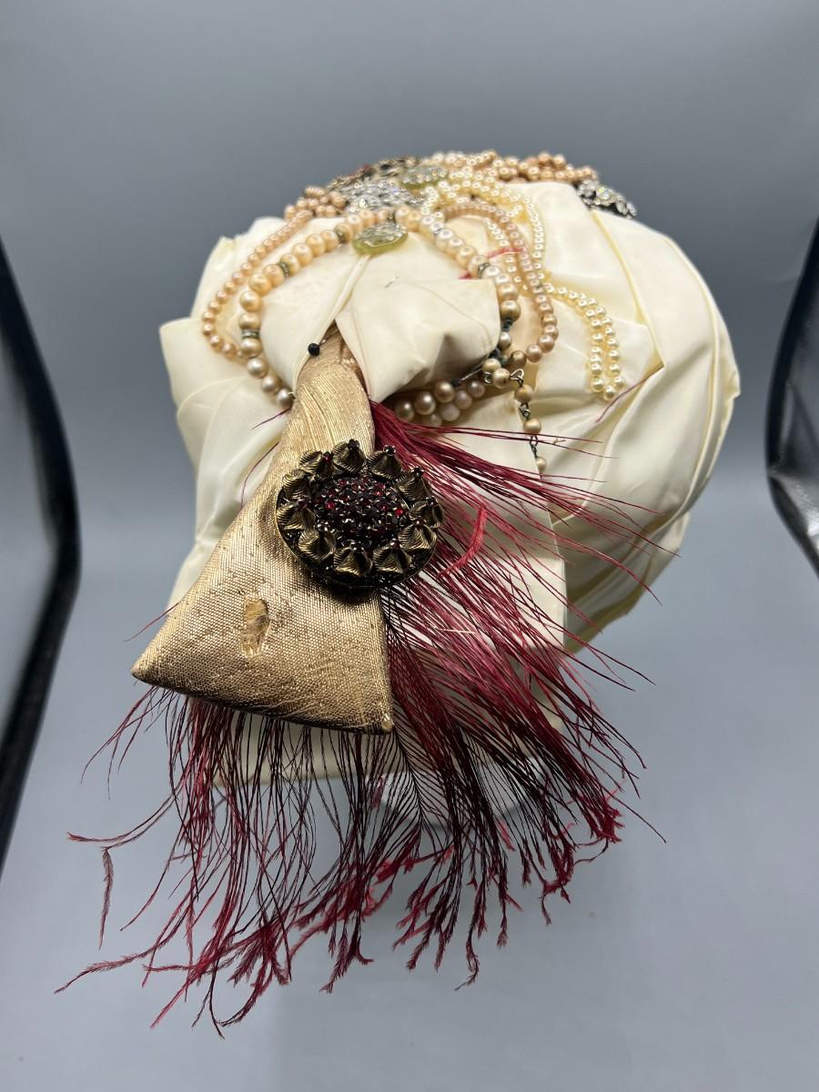Antique Traditional Indian Style Cream Colored Silk Turban Dress Cap