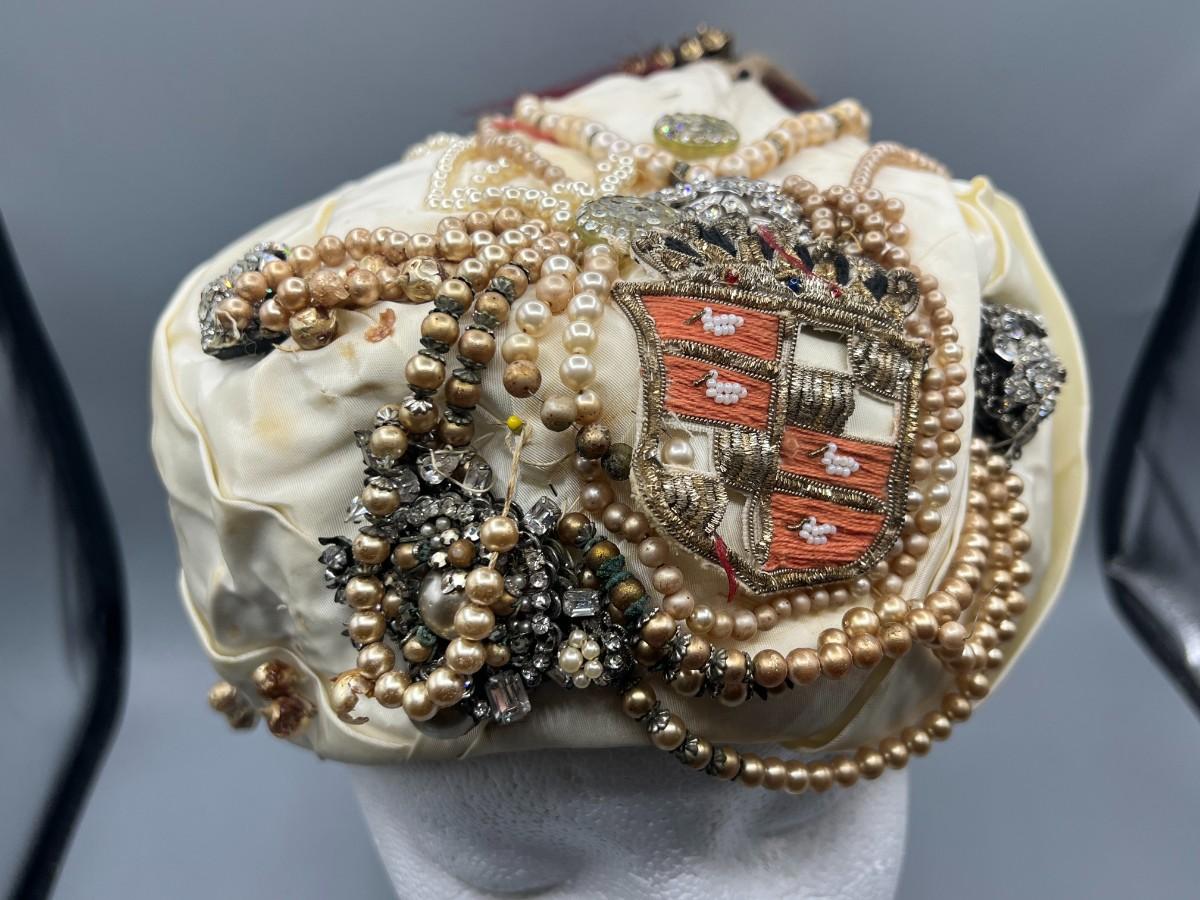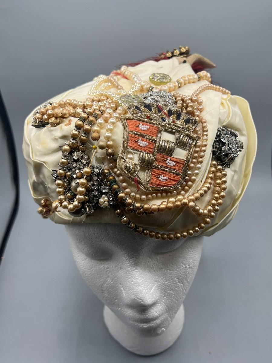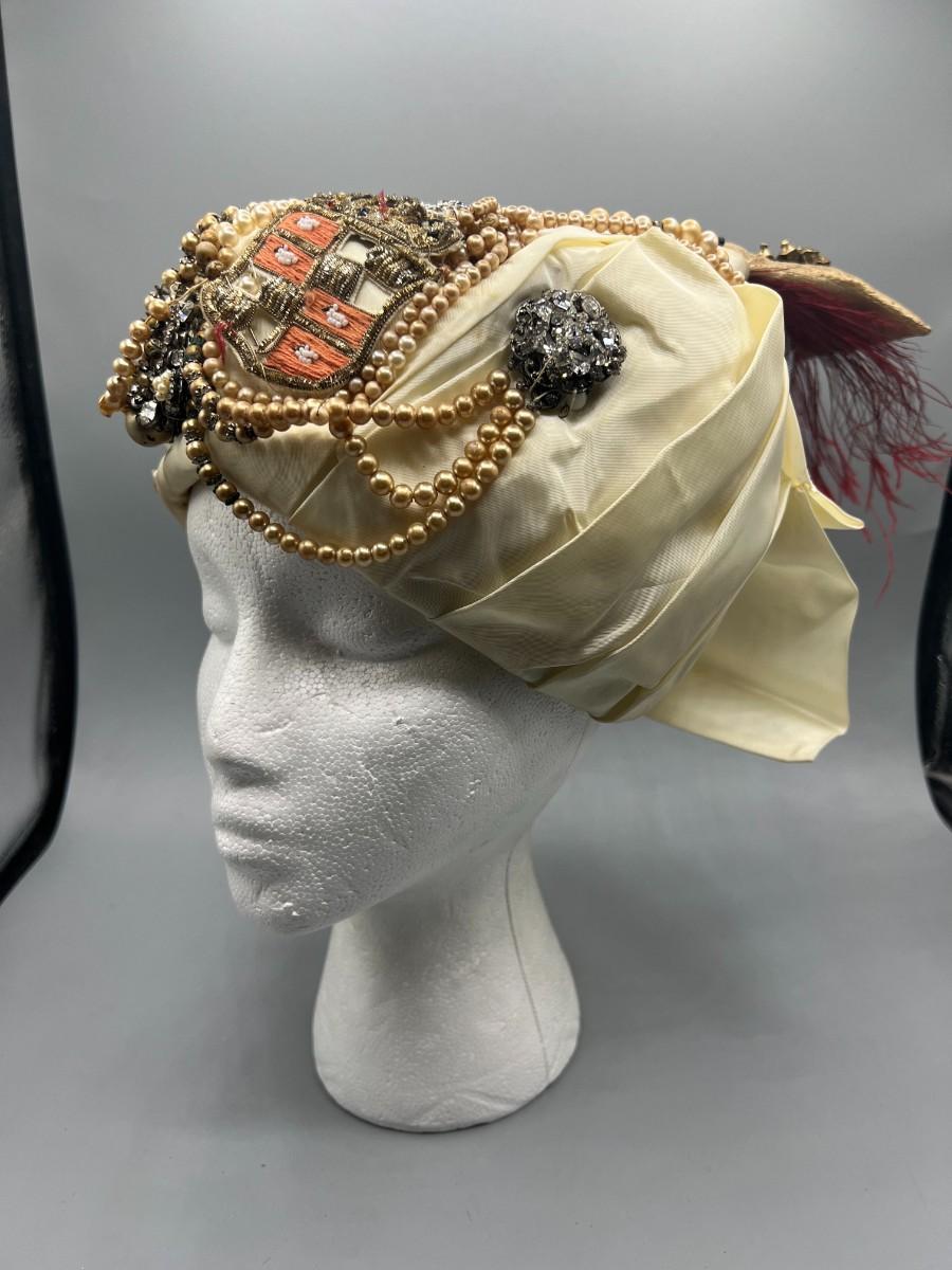 Antique Traditional Indian Style Cream Colored Silk Turban Dress Cap