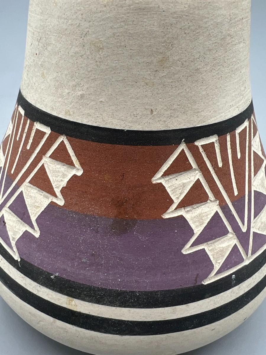There is no significant damage to the pottery vase and is in overall good collectible or displayable condition. Check pictures for more details and for sizing.