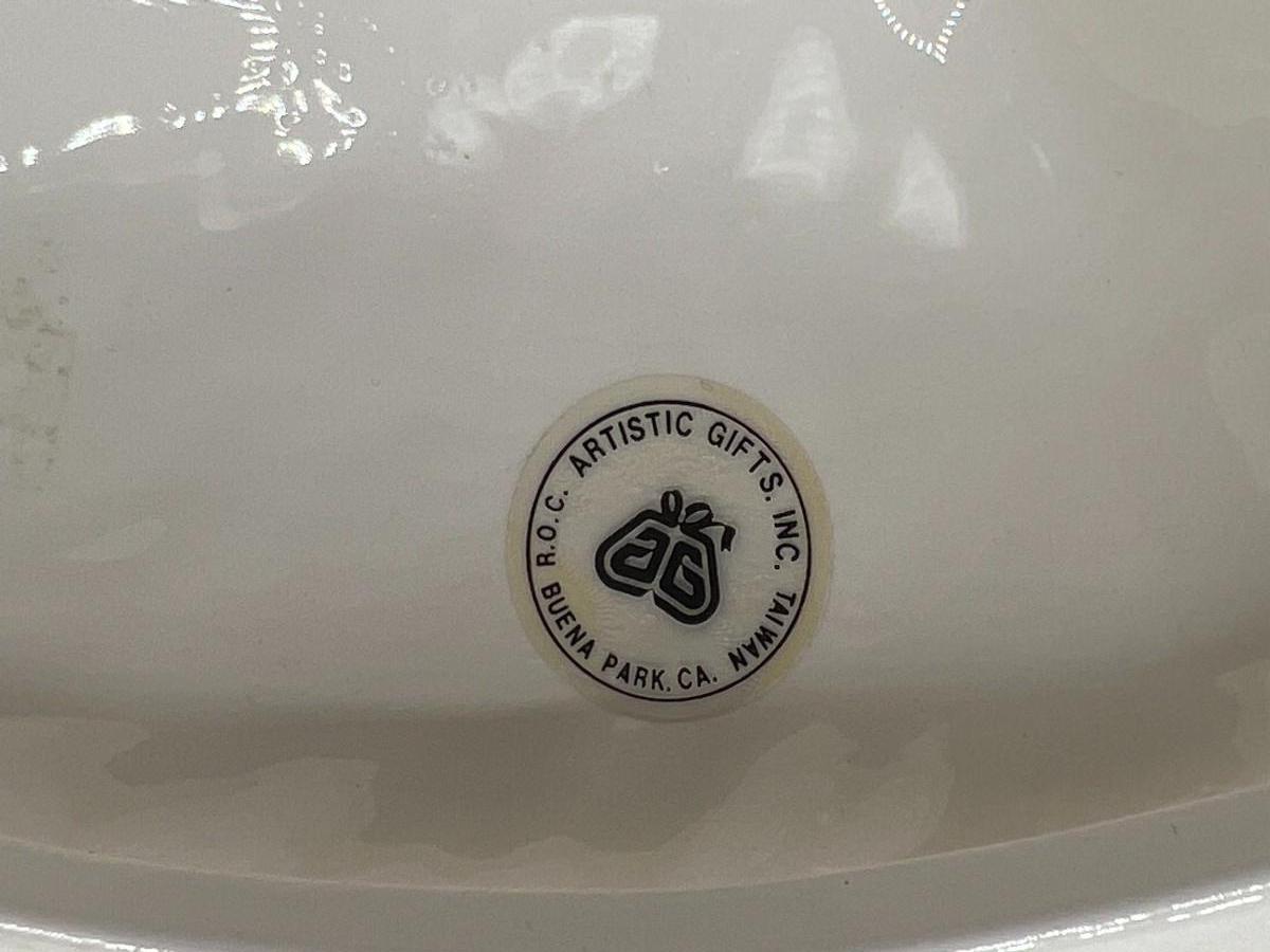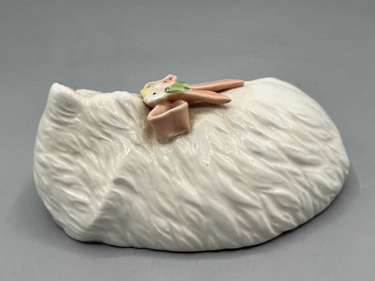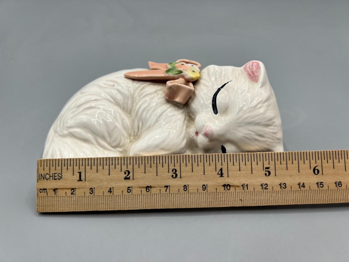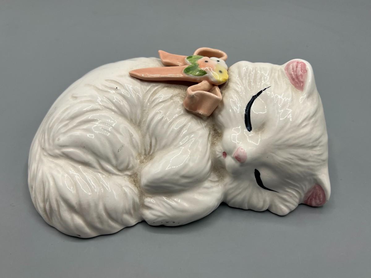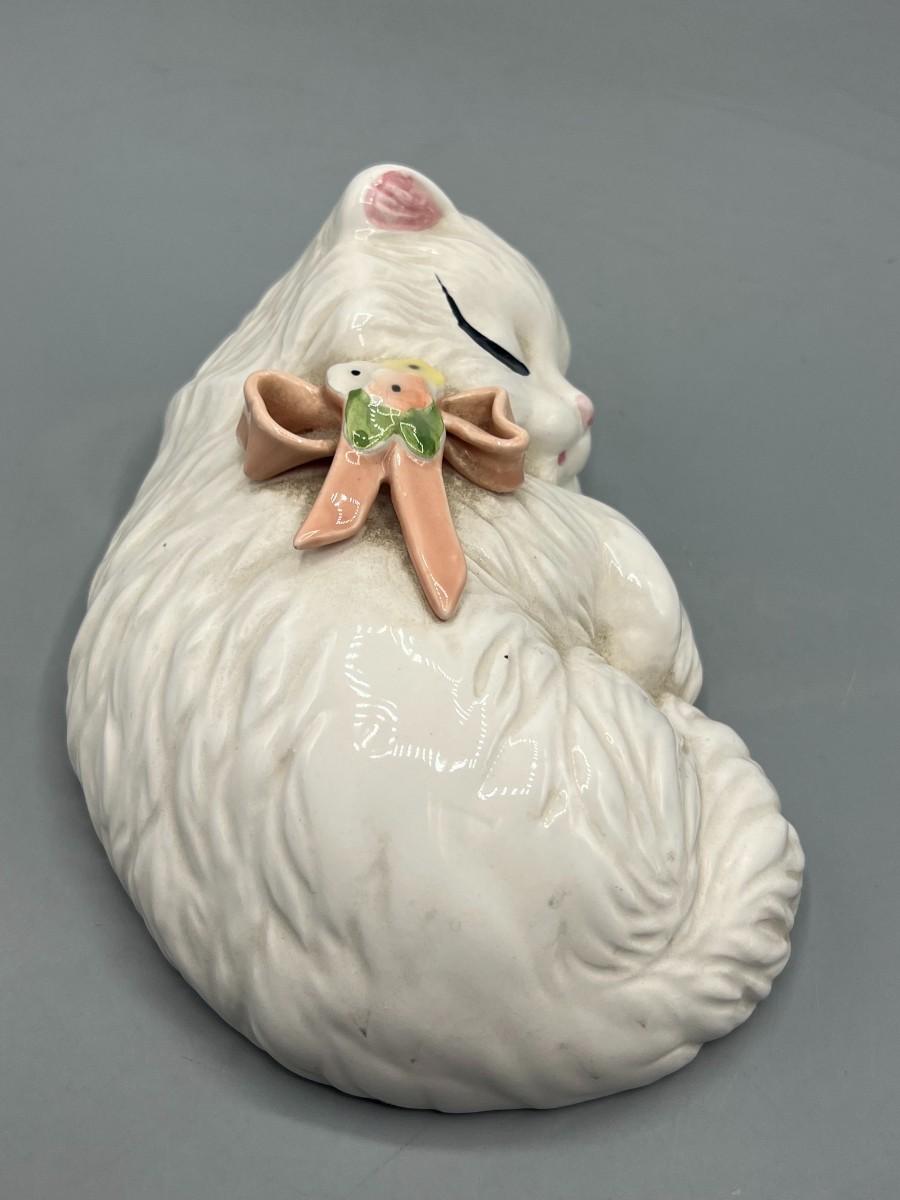 Vintage Artistic Gifts Buena Park White Ceramic Sleeping Cat with Pink Bow Figurine