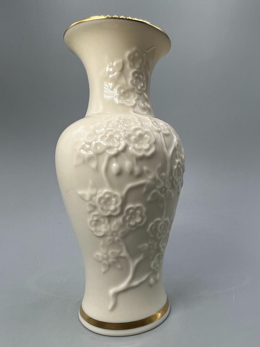 Vintage Lenox Ming Blossom Porcelain Floral Flower Vase Gold Gilt Base