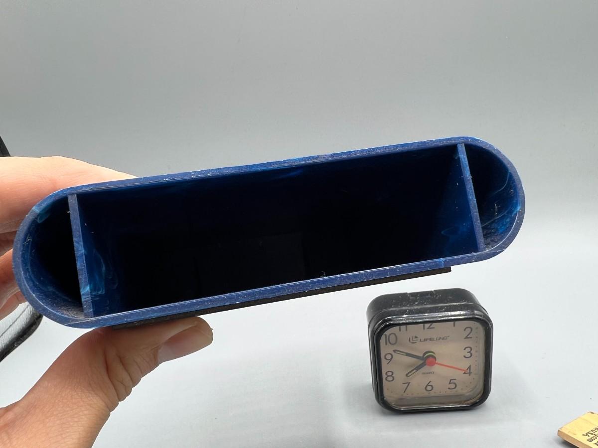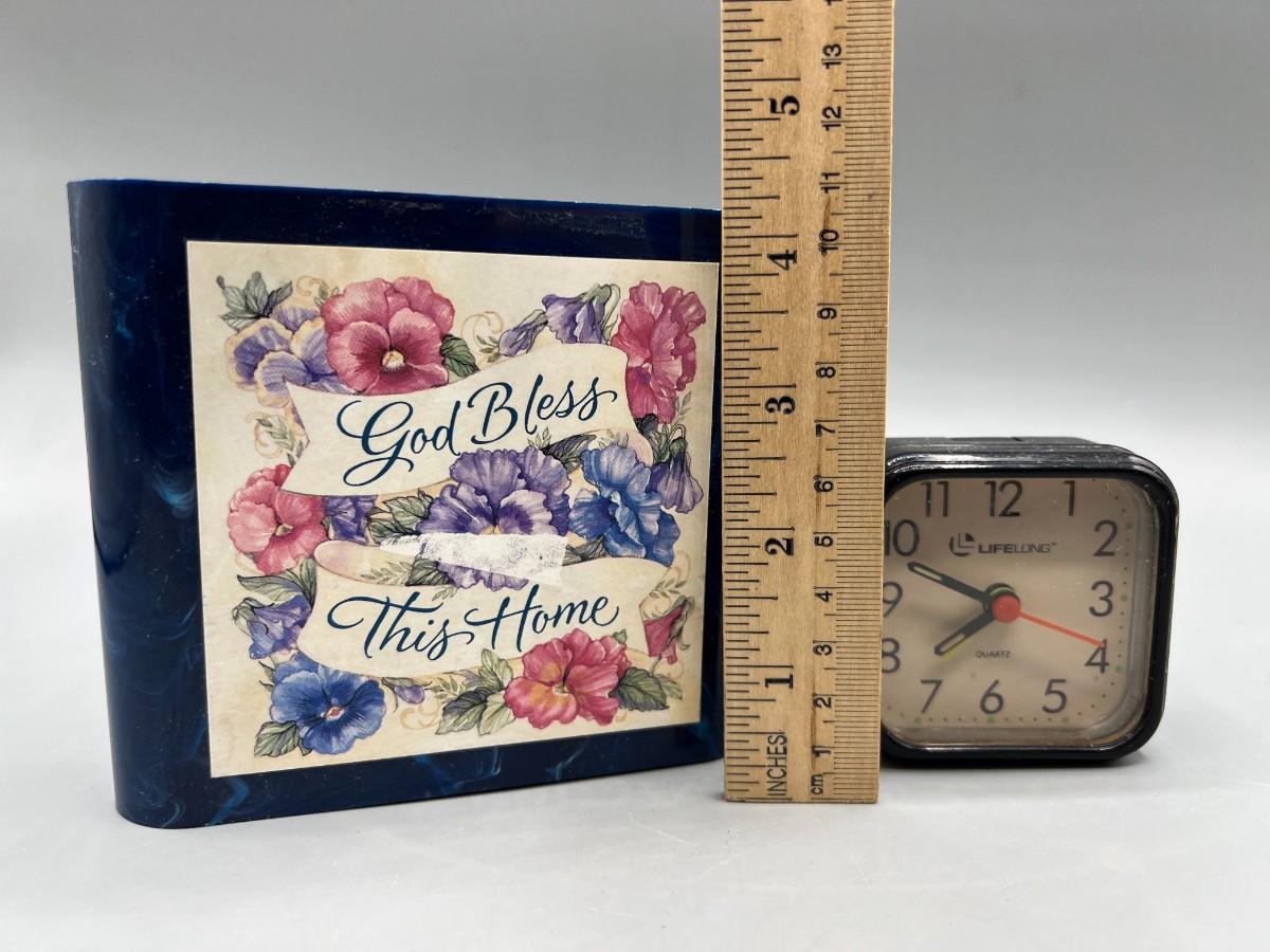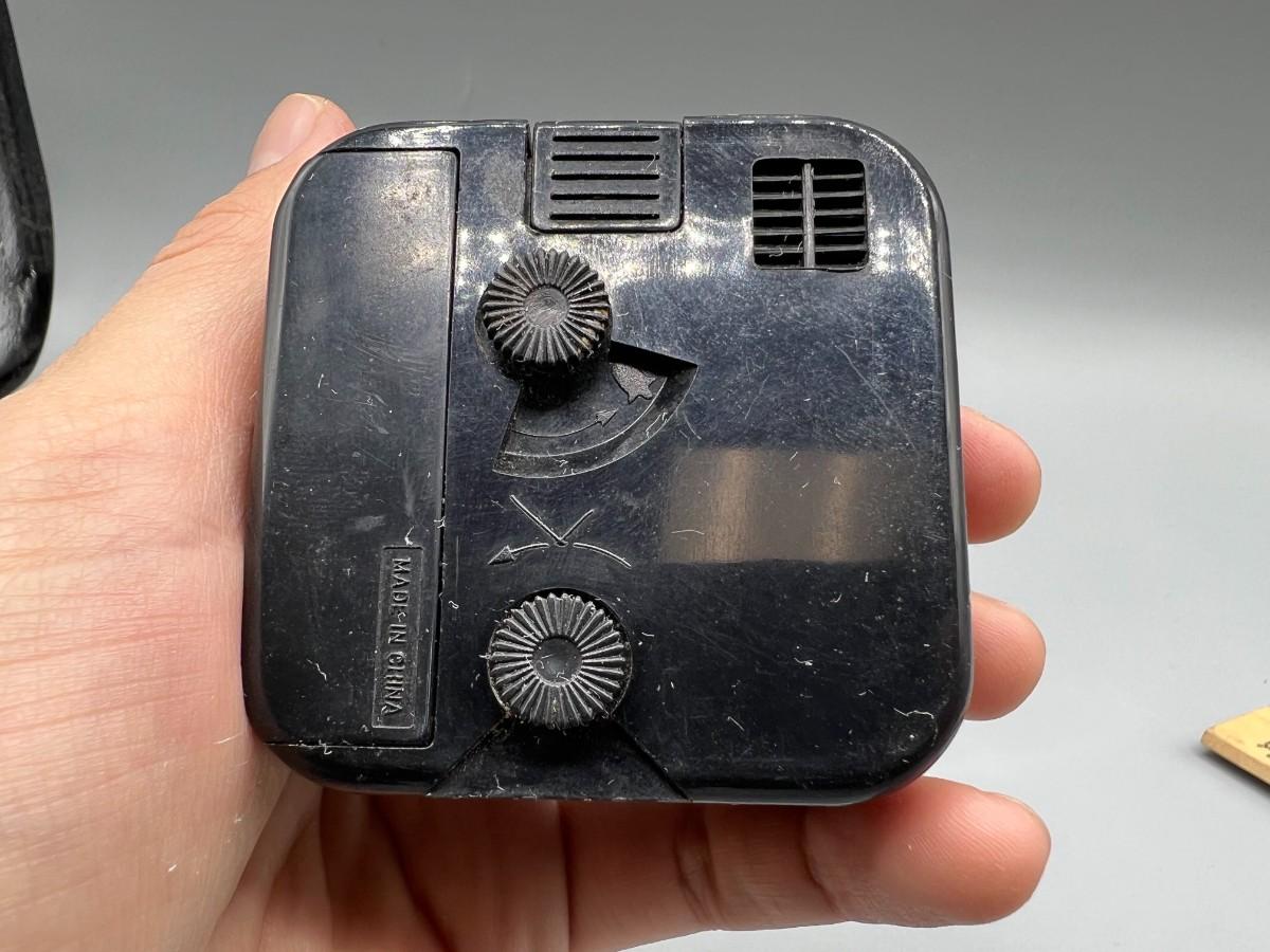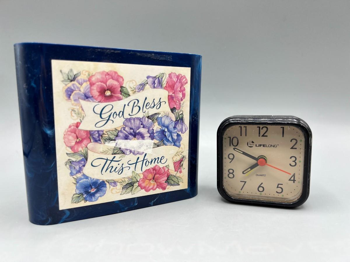 There is some retro wear to both of the pieces but there is no significant damage and is in overall good condition. The clock has not been tested with a new battery.