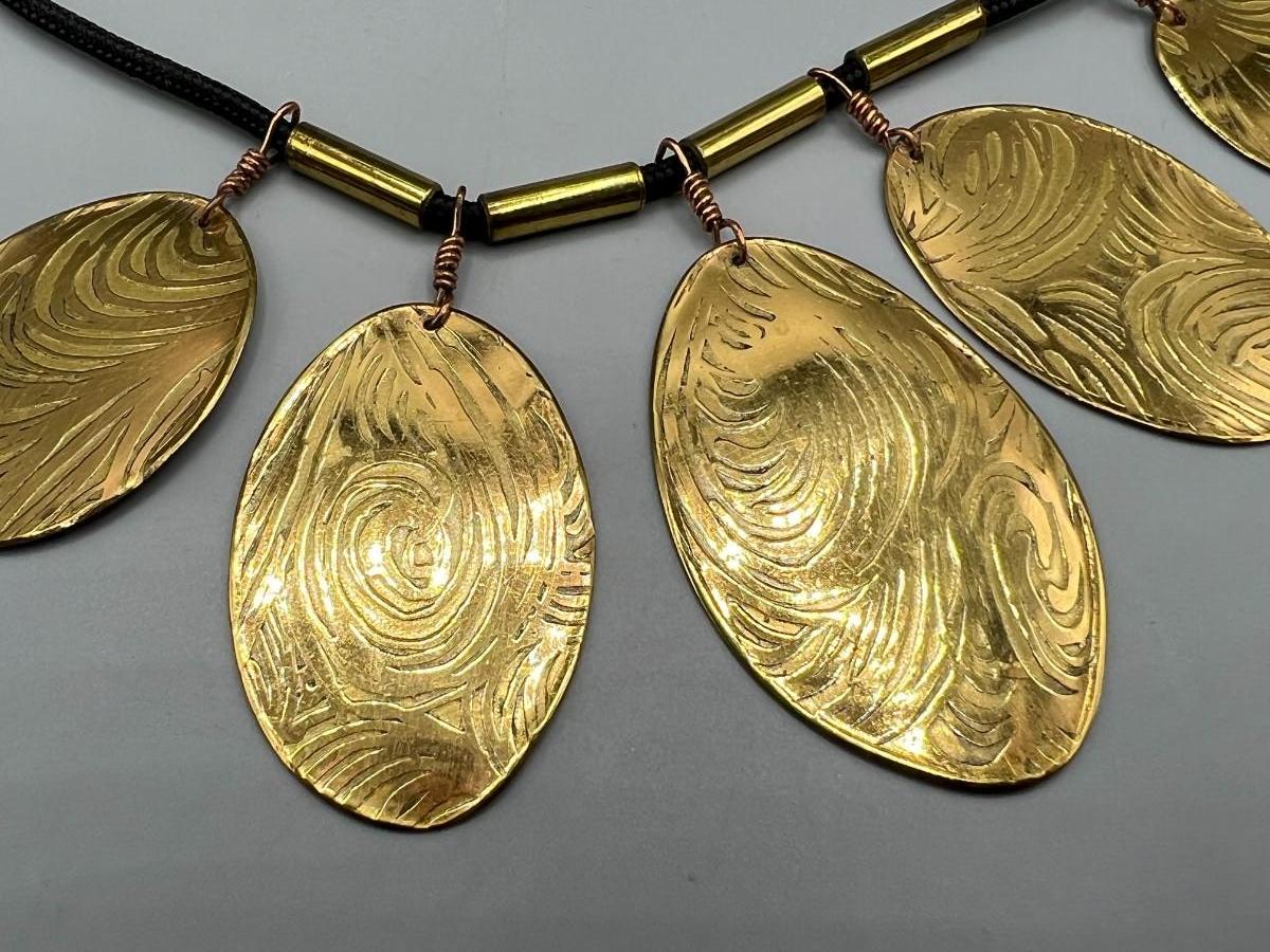 Crafted Handwrought & Etched Designer Jewelry Medallion Necklace