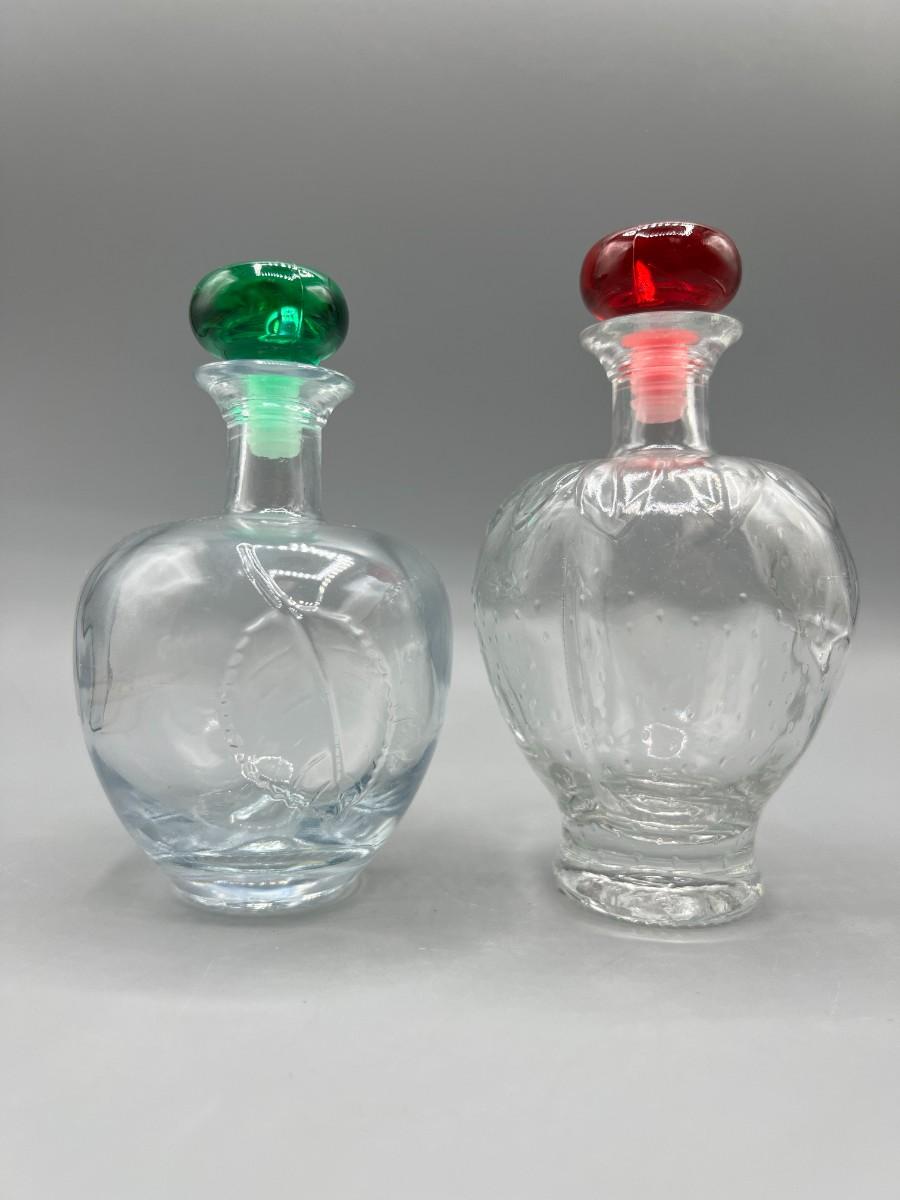 Retro Mid Century Apple & Strawberry Glass Decanter Ingredient Bottles