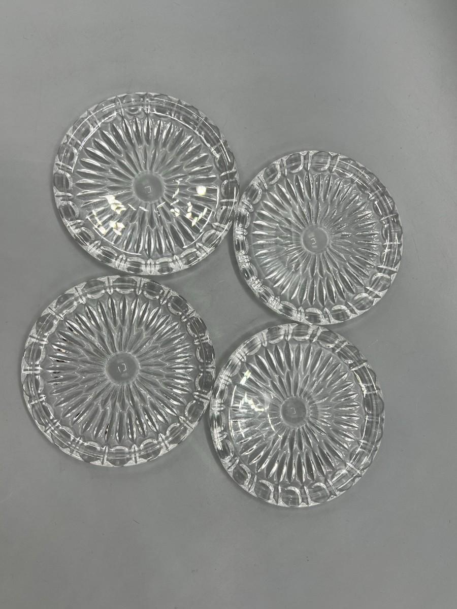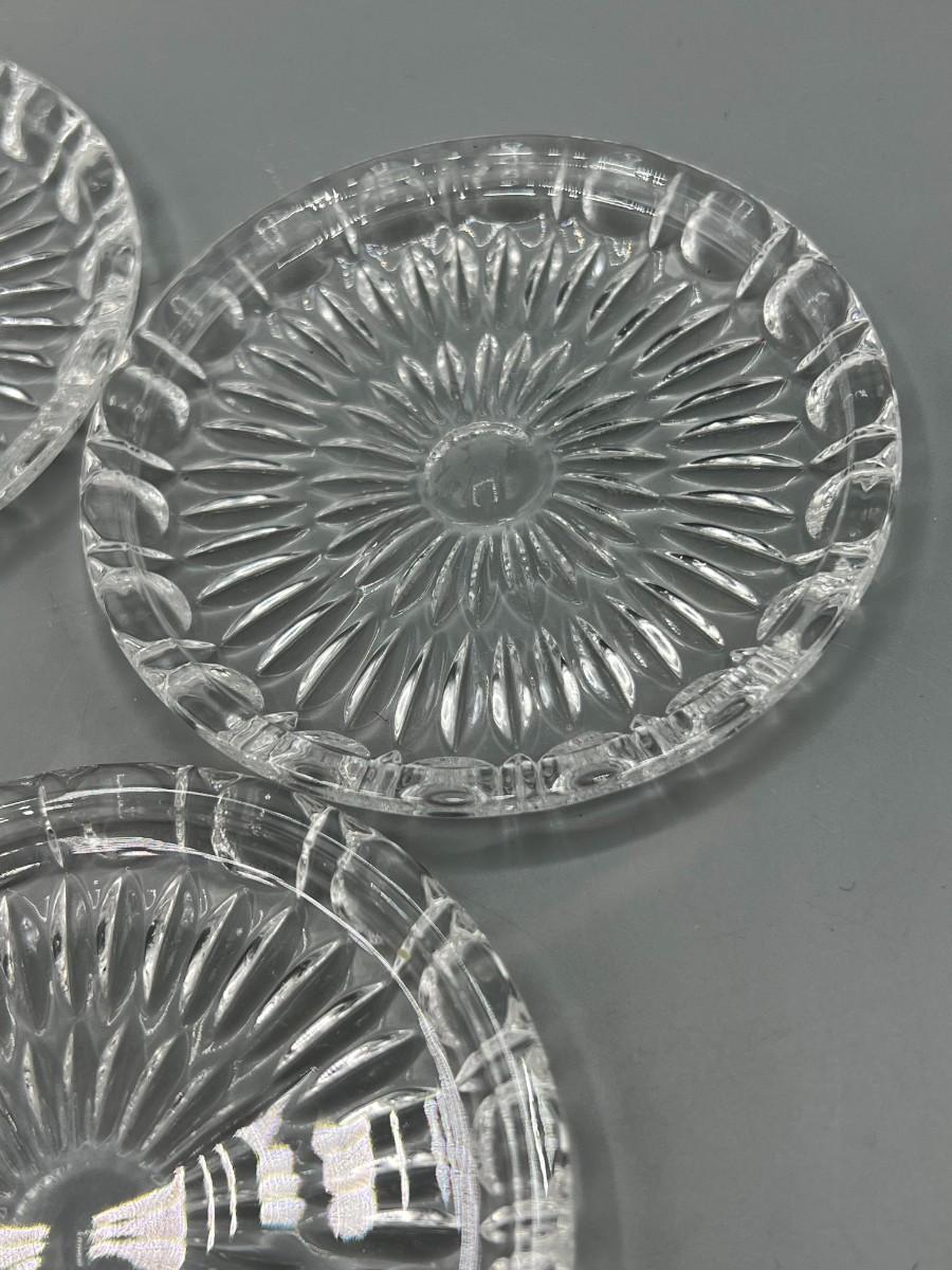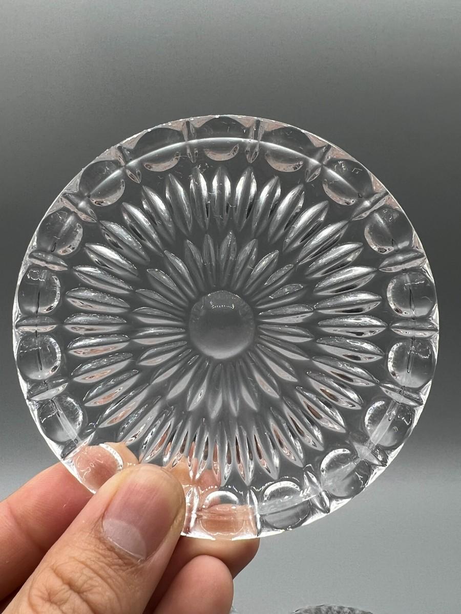 There is no significant damage to the glass coasters and is in overall good collectible or useable condition. Check pictures for more details and for sizing.