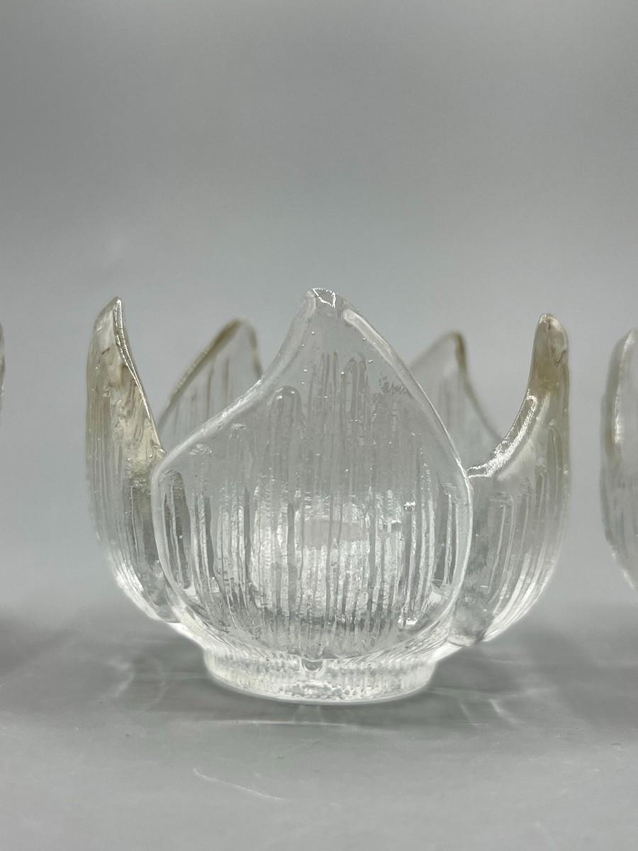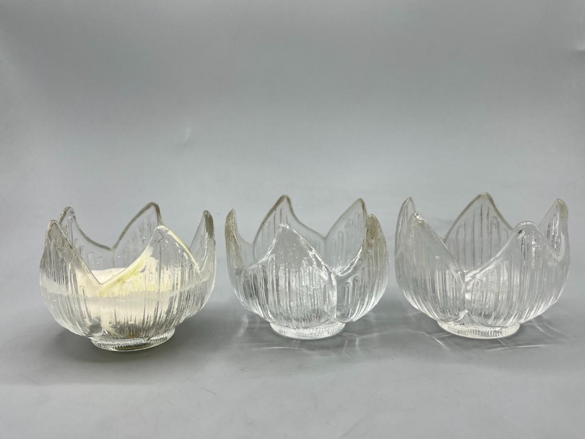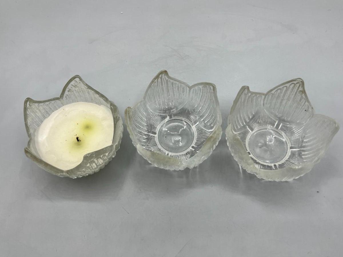 Vintage Set of Glass Lily Lotus Flower Tealight Candle Holders