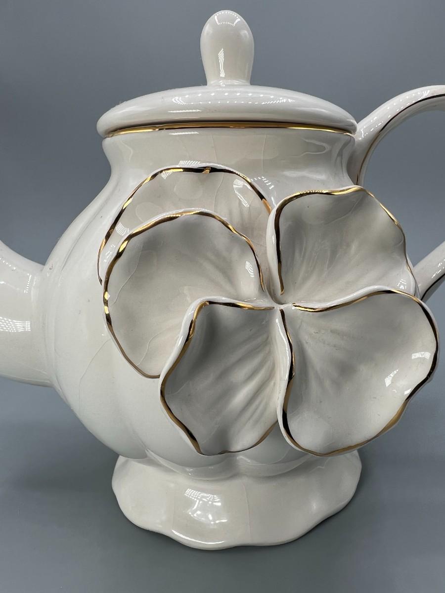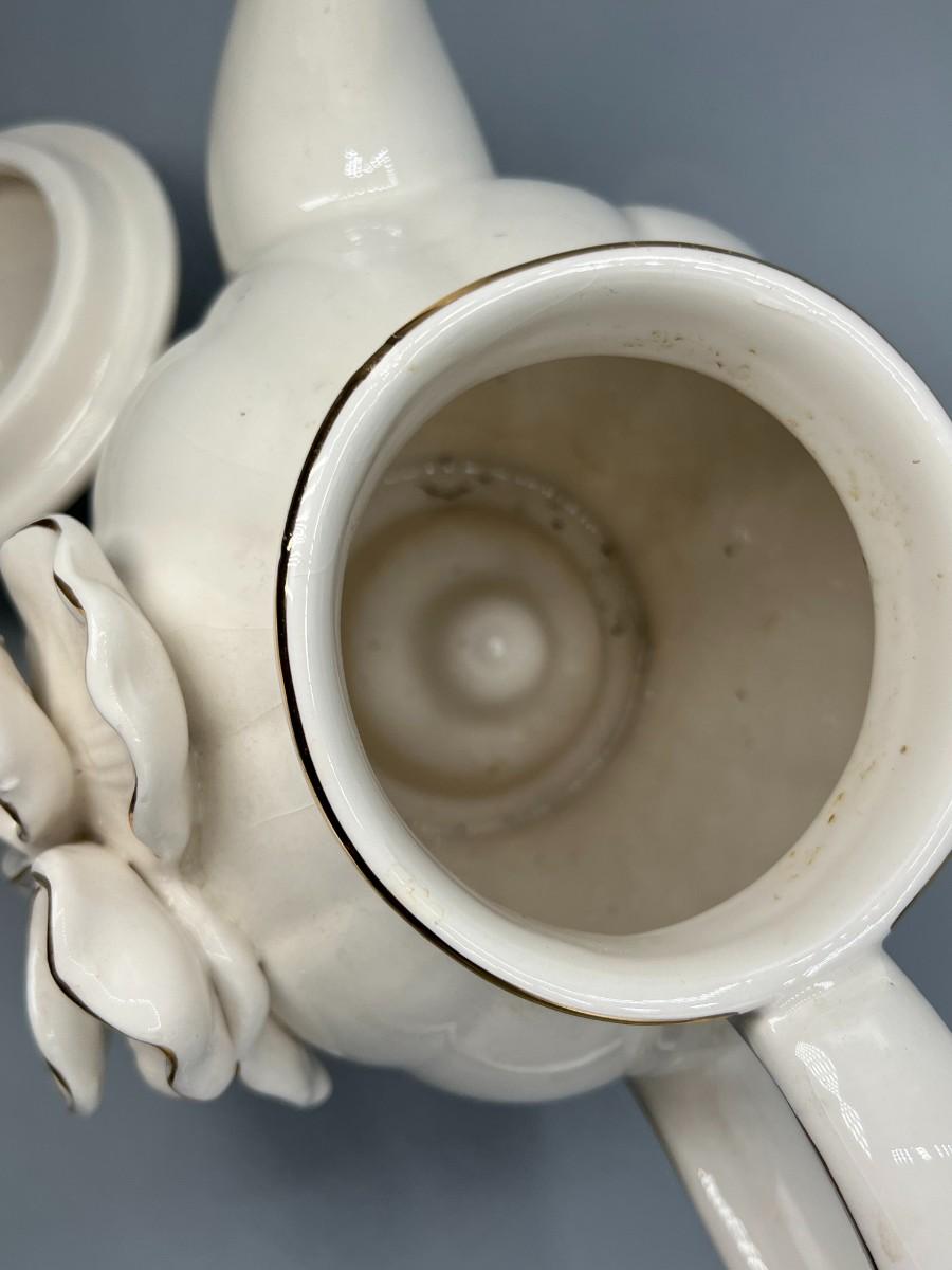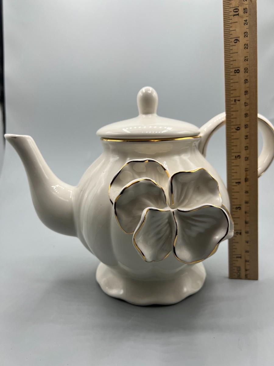 There is some crazing to the lid and to the body of the teapot, but there is no significant cracks or chips and is in overall good collectible or useable condition. Check pictures for more details and for sizing.