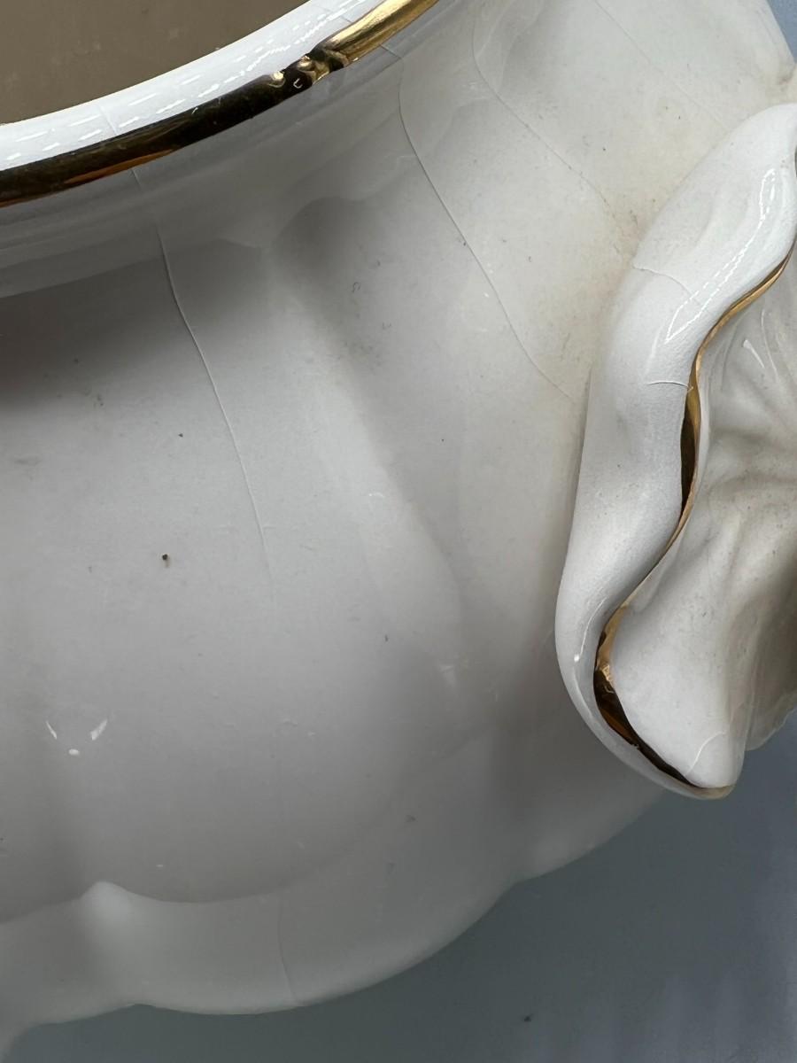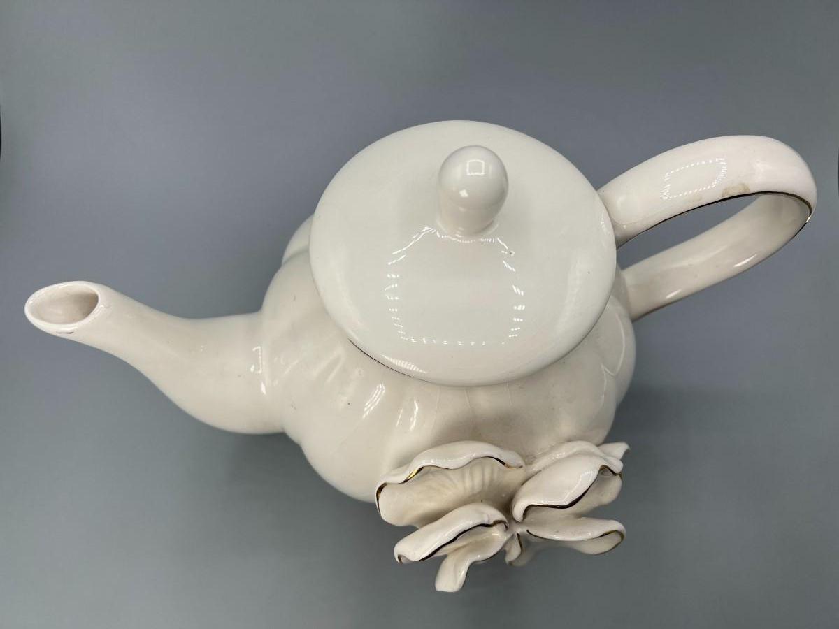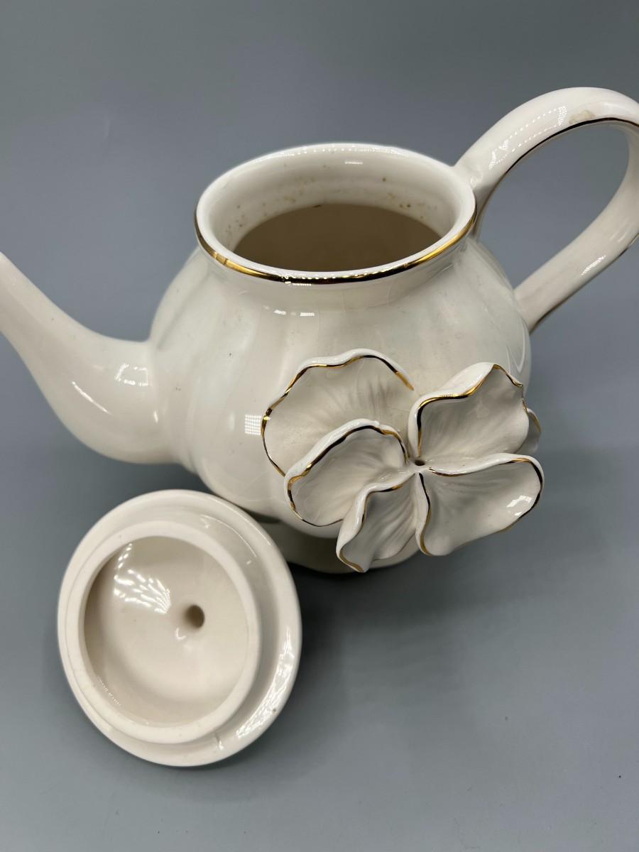 There is some crazing to the lid and to the body of the teapot, but there is no significant cracks or chips and is in overall good collectible or useable condition. Check pictures for more details and for sizing.