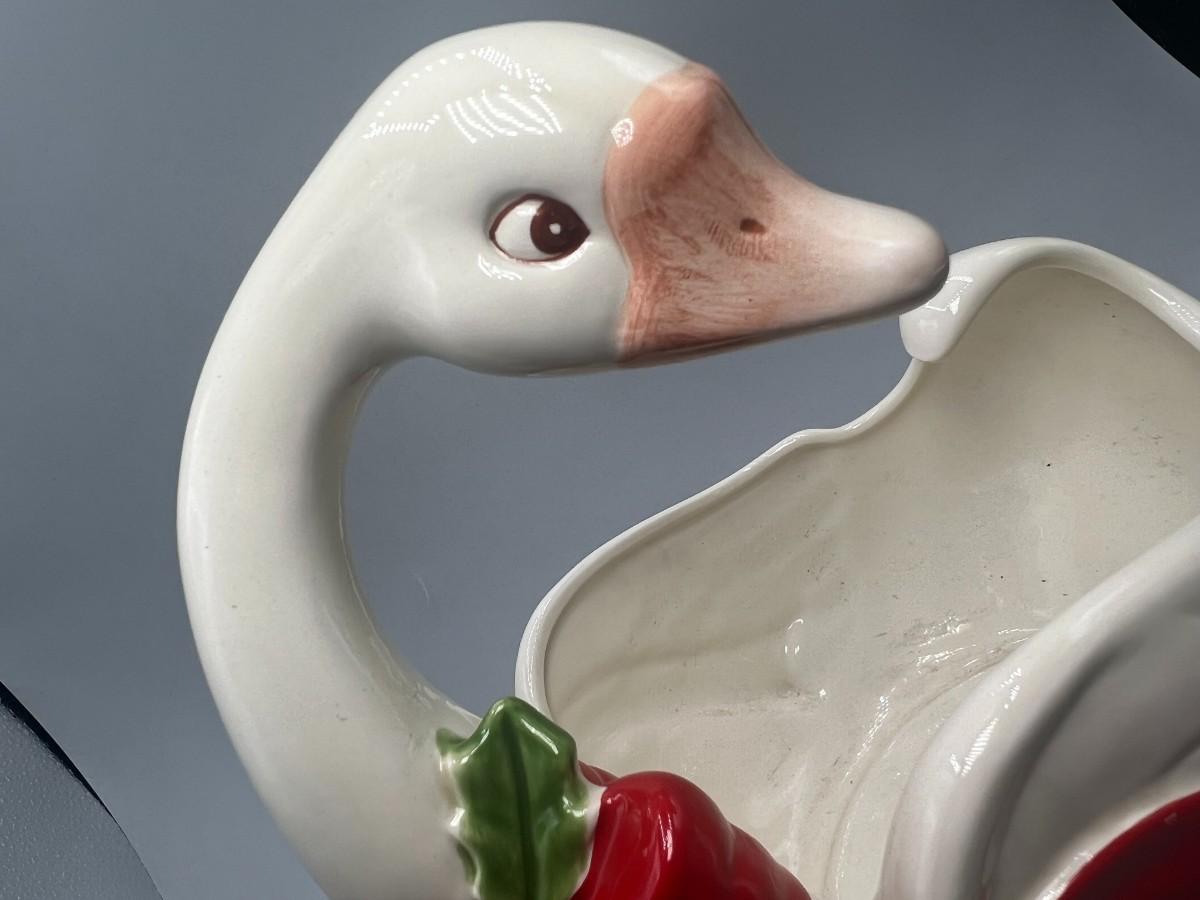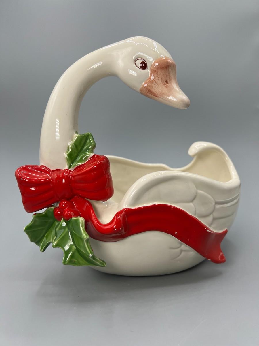 Vintage Fitz and Floyd Christmas Holiday Holly Swan Goose Bowl Decor