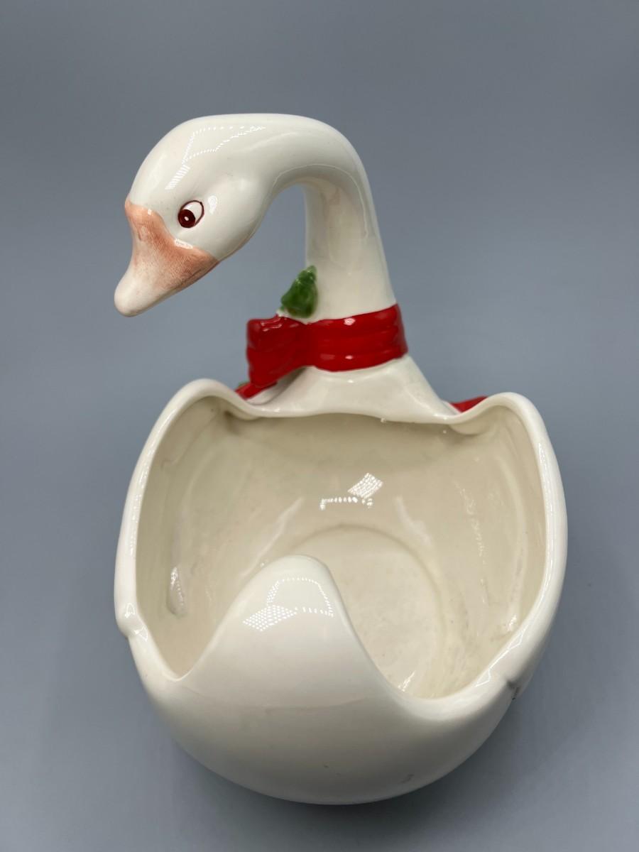 There is some light vintage wear to the goose bowl, but there is no significant damage and is in overall good collectible or displayable condition. Check pictures for more details and for sizing.