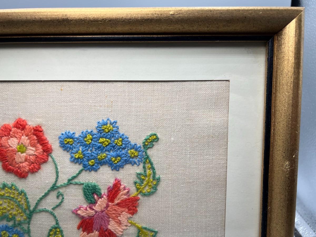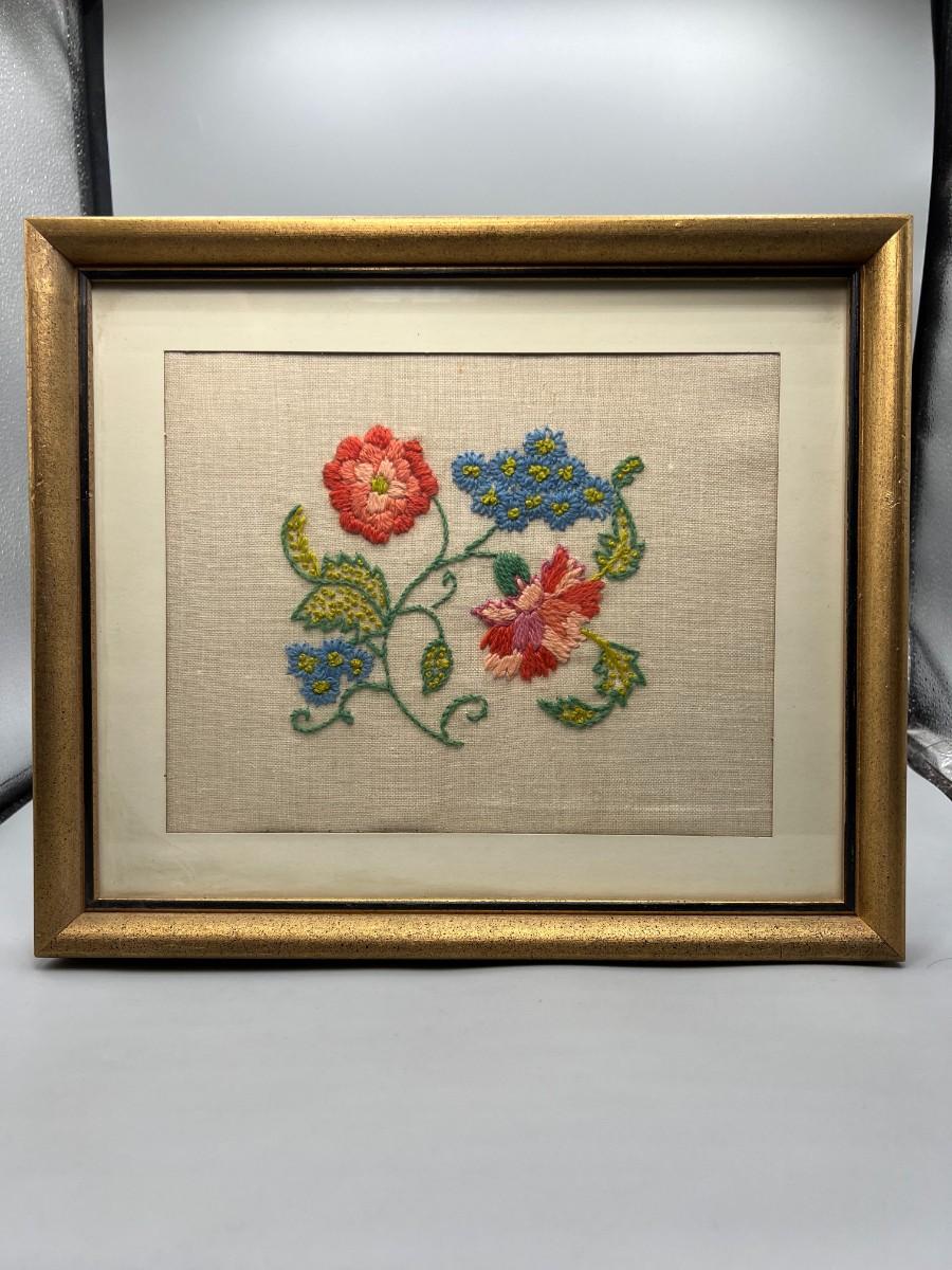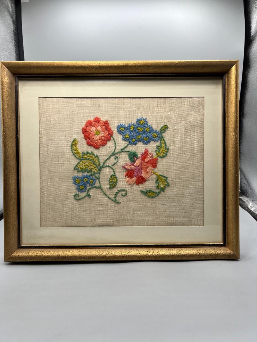 Vintage Hand Stitched Crafted by Ethel Needlepoint Art Flowers