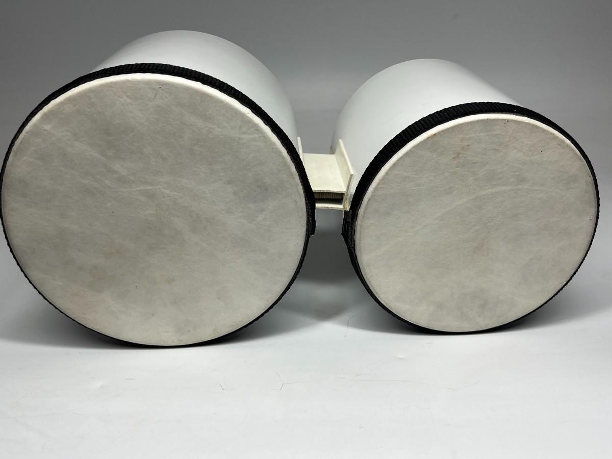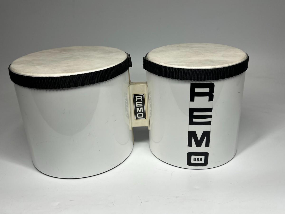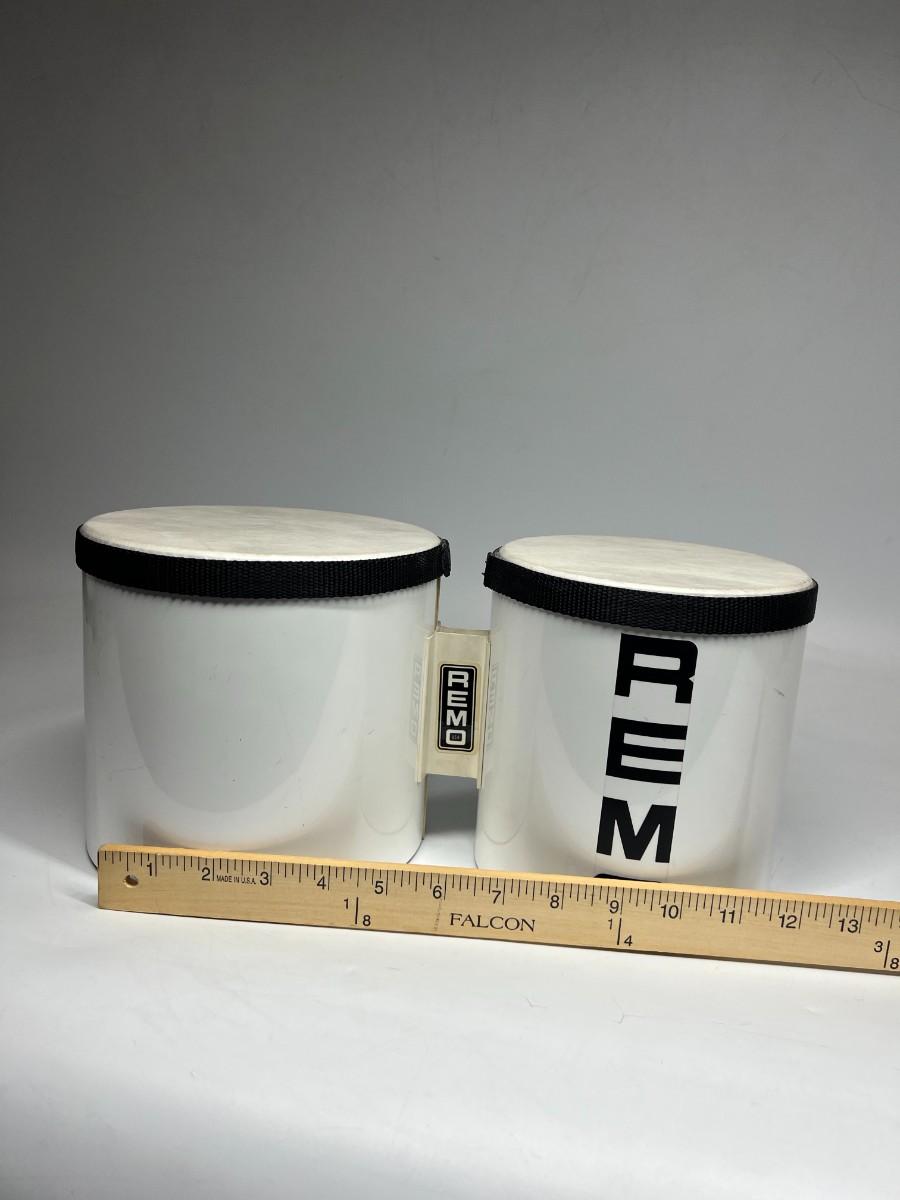 There is some light wear to the bongos, but there is no significant damage and is in good useable condition. Check pictures for more details and for sizing.