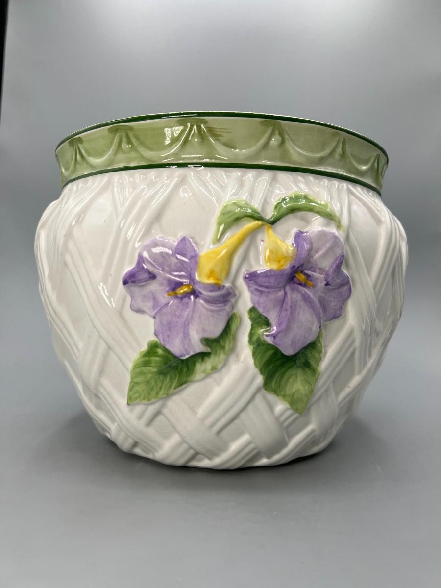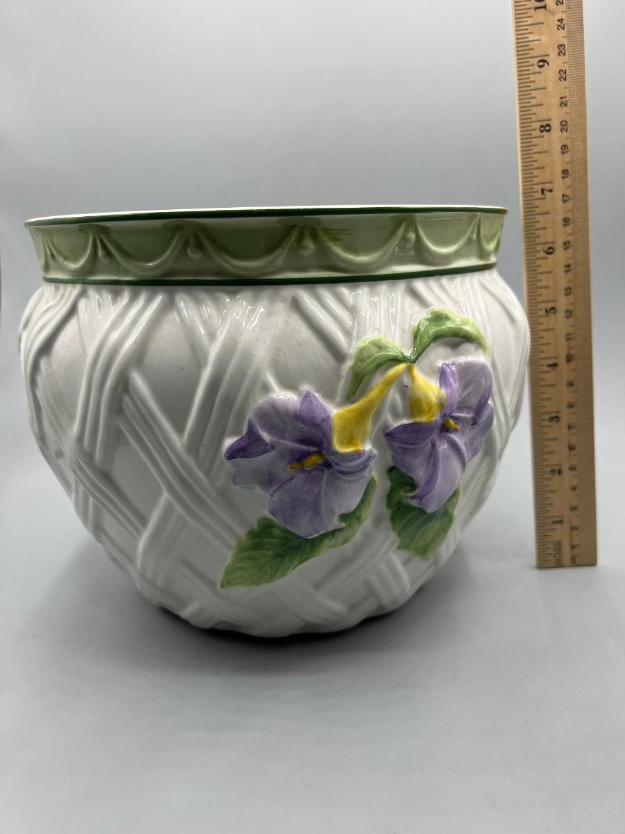 Loucarte Ceramic Portugal Purple Flower Planter Pot. Previously used condition. There is crazing to the pot.