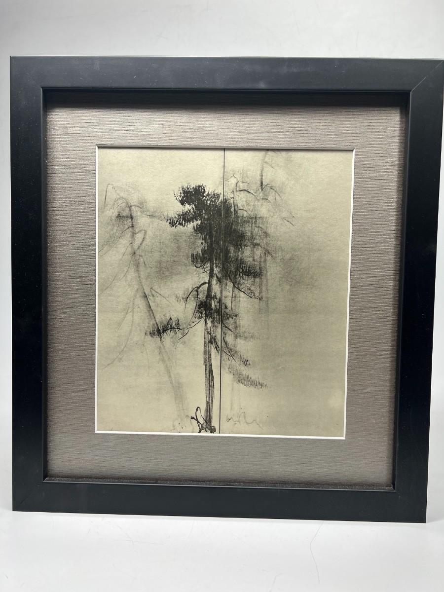 Framed Charcoal Tree Sketch Art. In good condition. 16" frame.