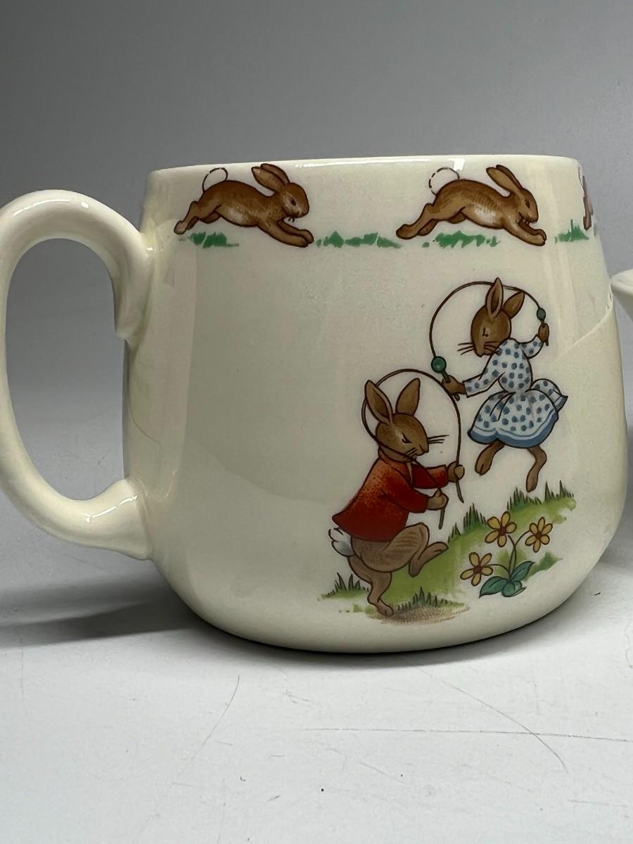 Vintage Royal Doultan Bunnykins Child's Dish Set Cup Bowl Plate with Box. In good condition.