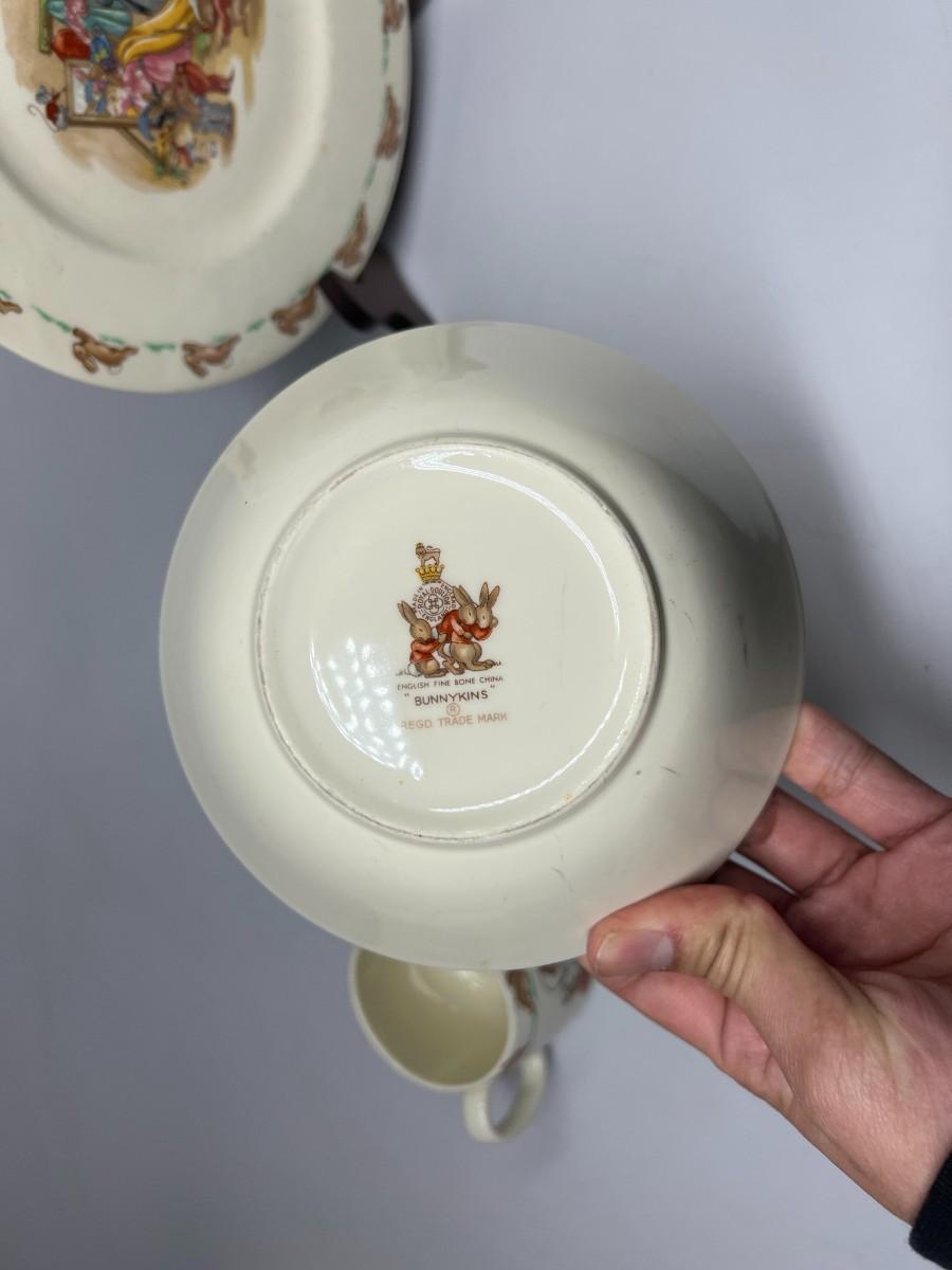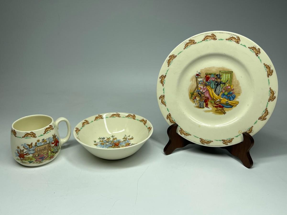 Vintage Royal Doultan Bunnykins Child's Dish Set Cup Bowl Plate with Box