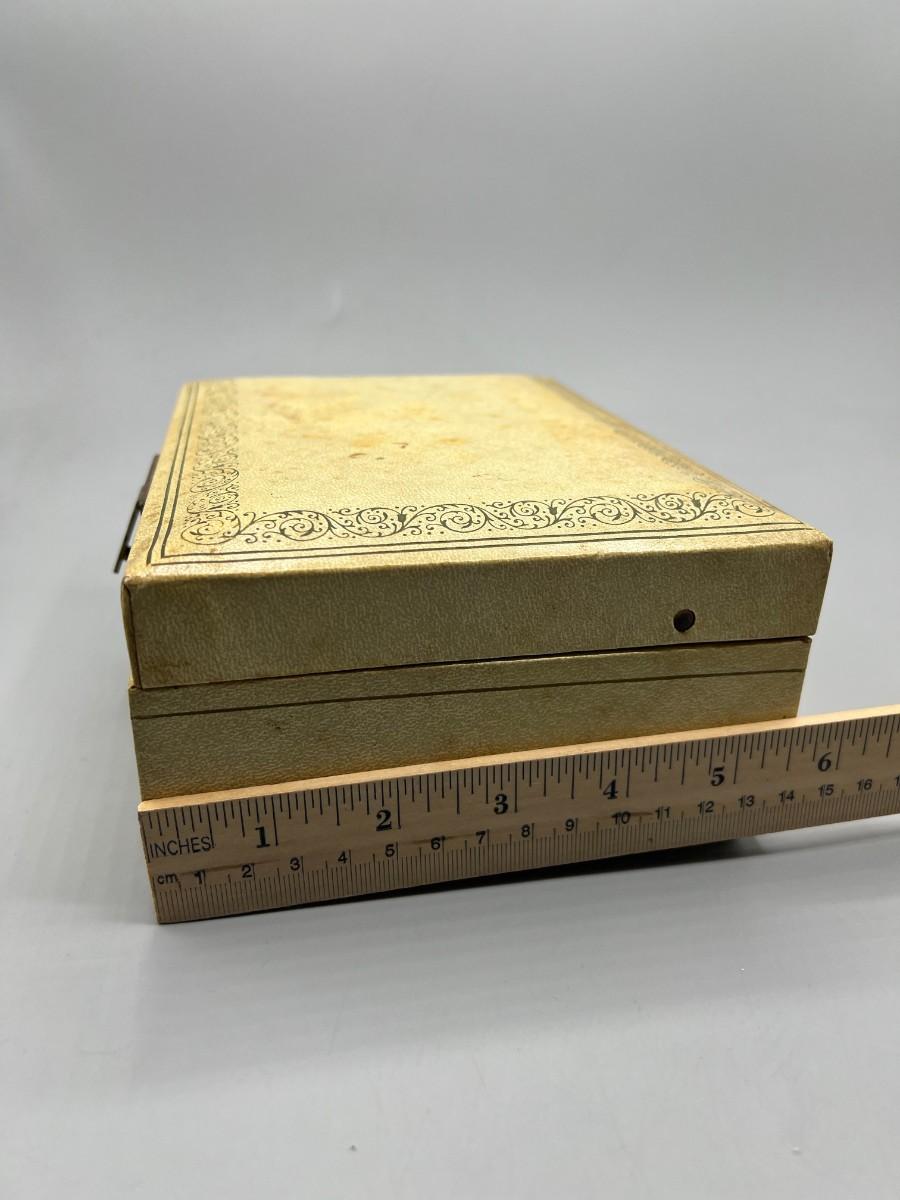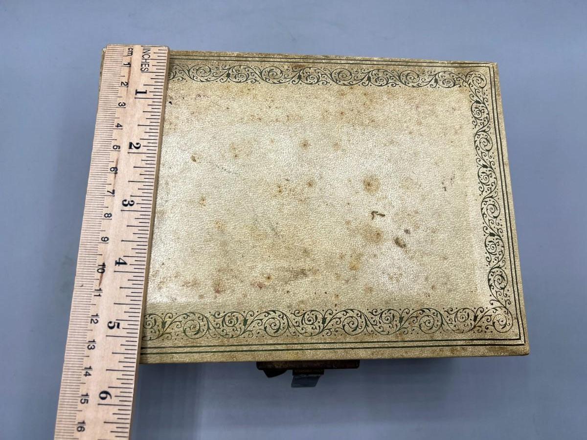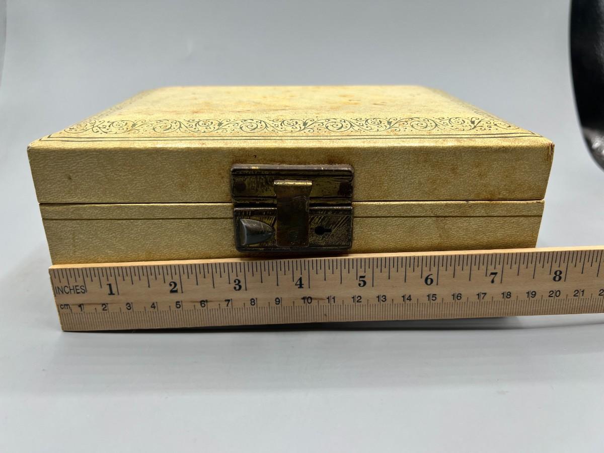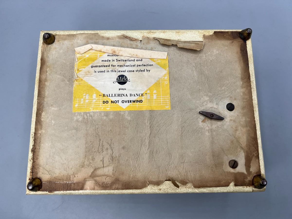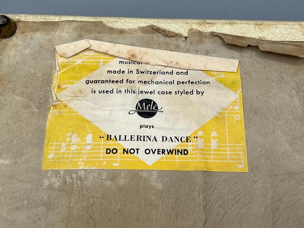 Vintage Mele Jewelry Music Box Ballerina Dance. In vintage condition. Might come clean with a little work. Inside is in fair condition also.