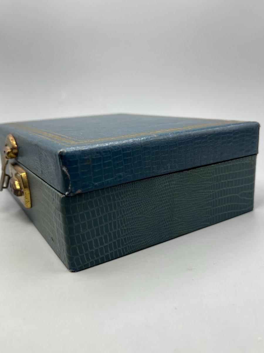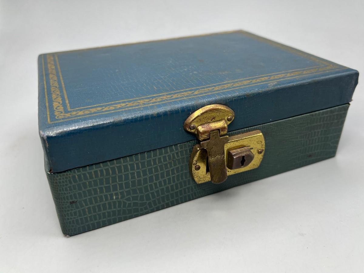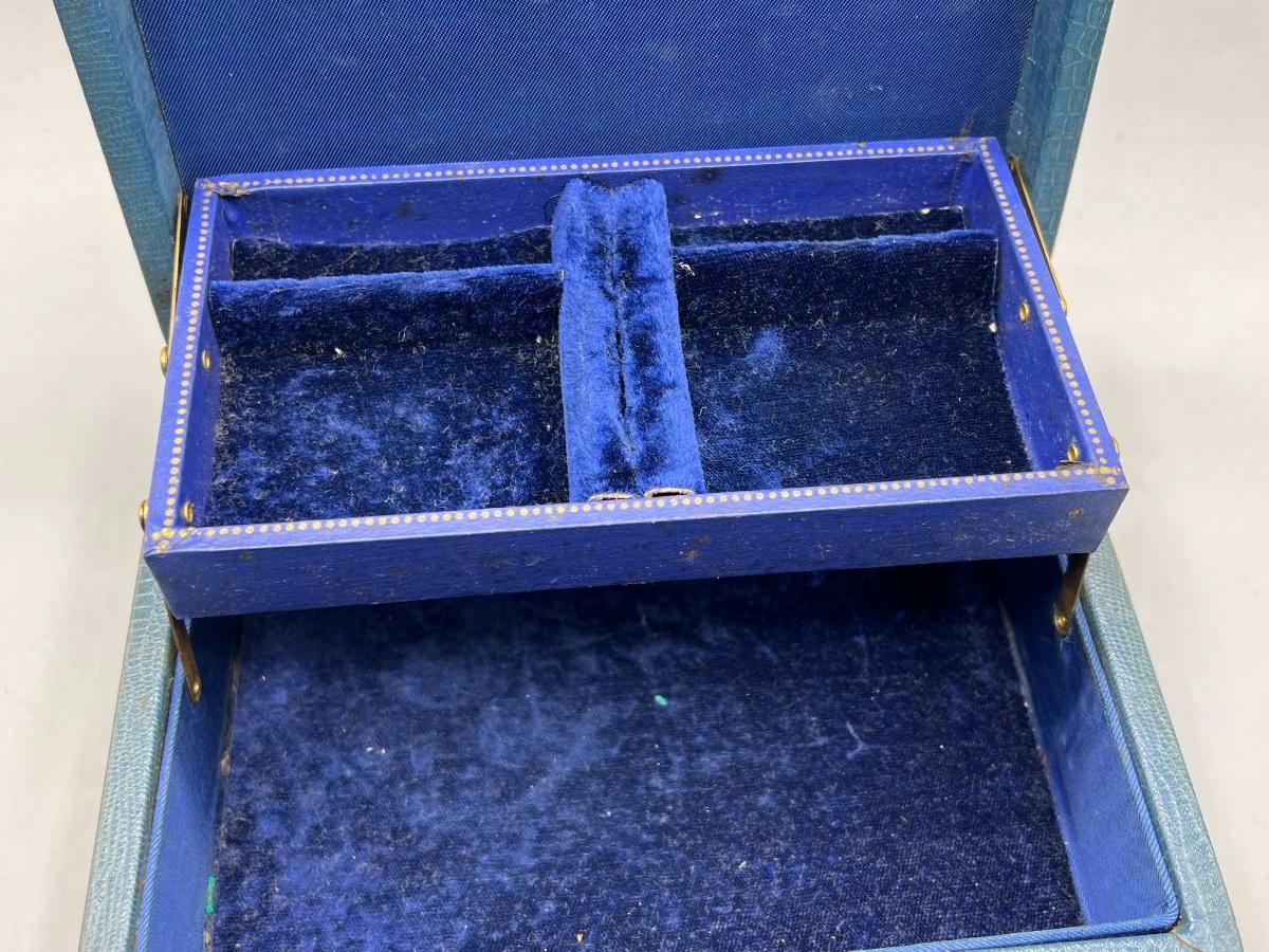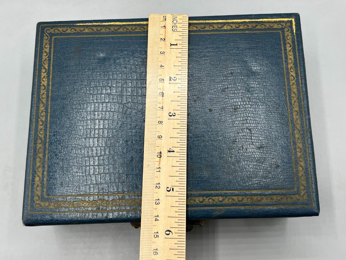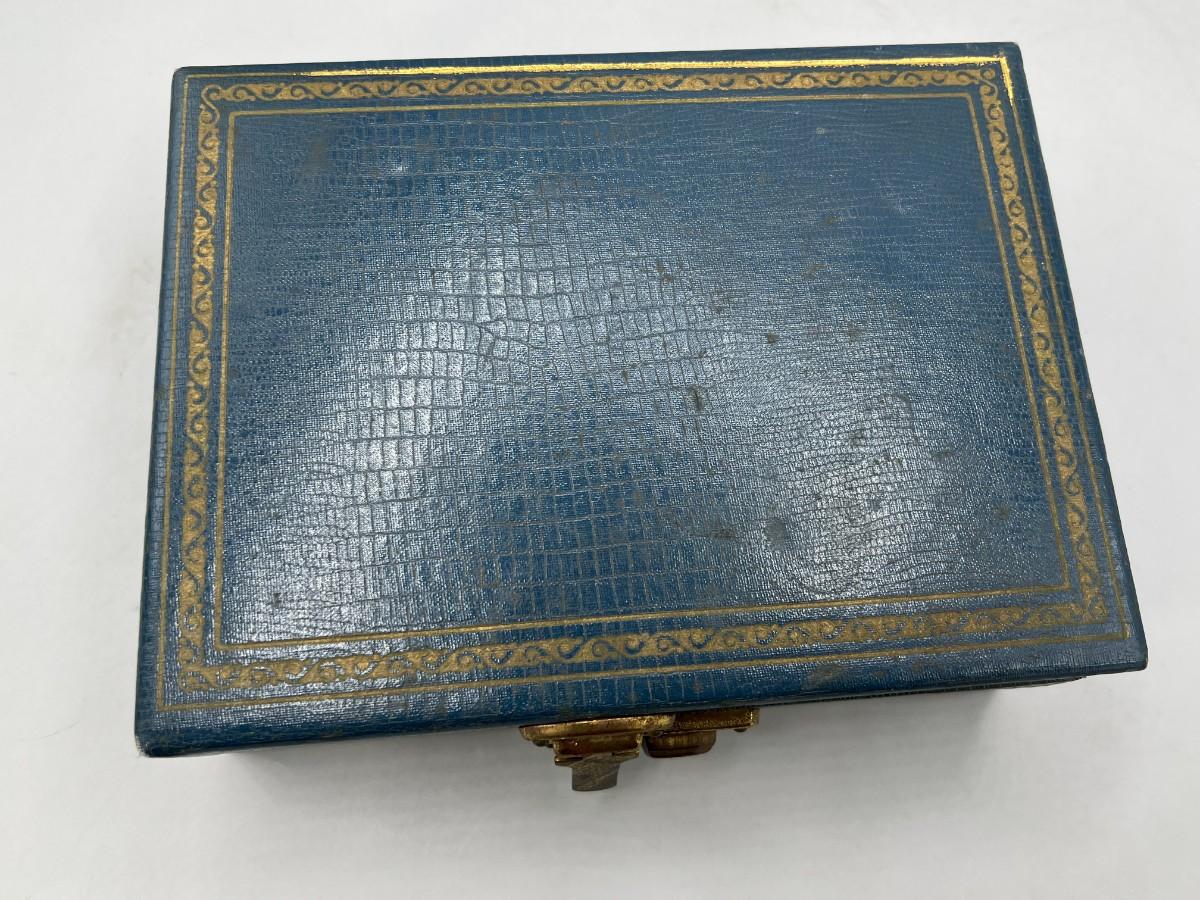 Vintage Blue & Gold Velvet Lined Jewelry Box
