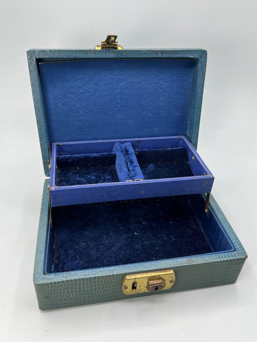 Vintage Blue & Gold Velvet Lined Jewelry Box. In vintage condition.