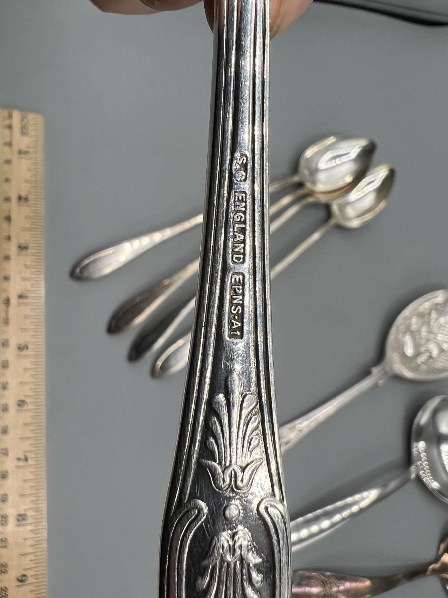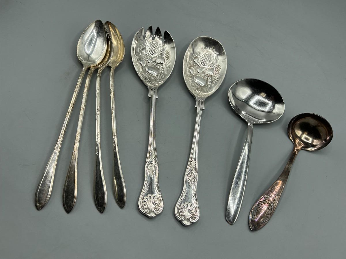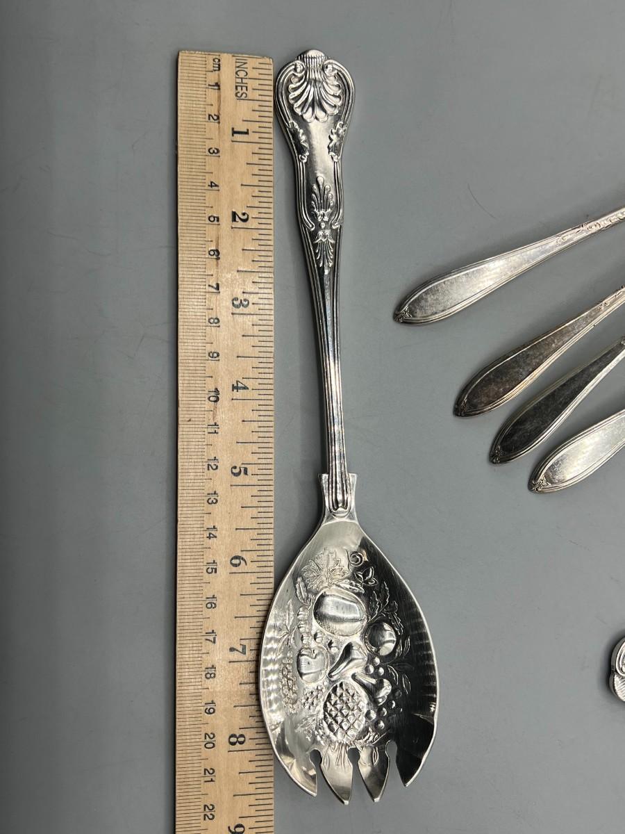 Vintage Mixed Lot of Silver Plate Serving Tongs Long Handle Teaspoons Ladle