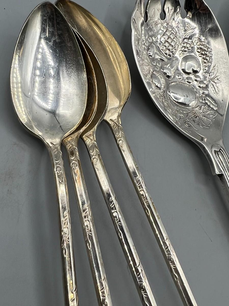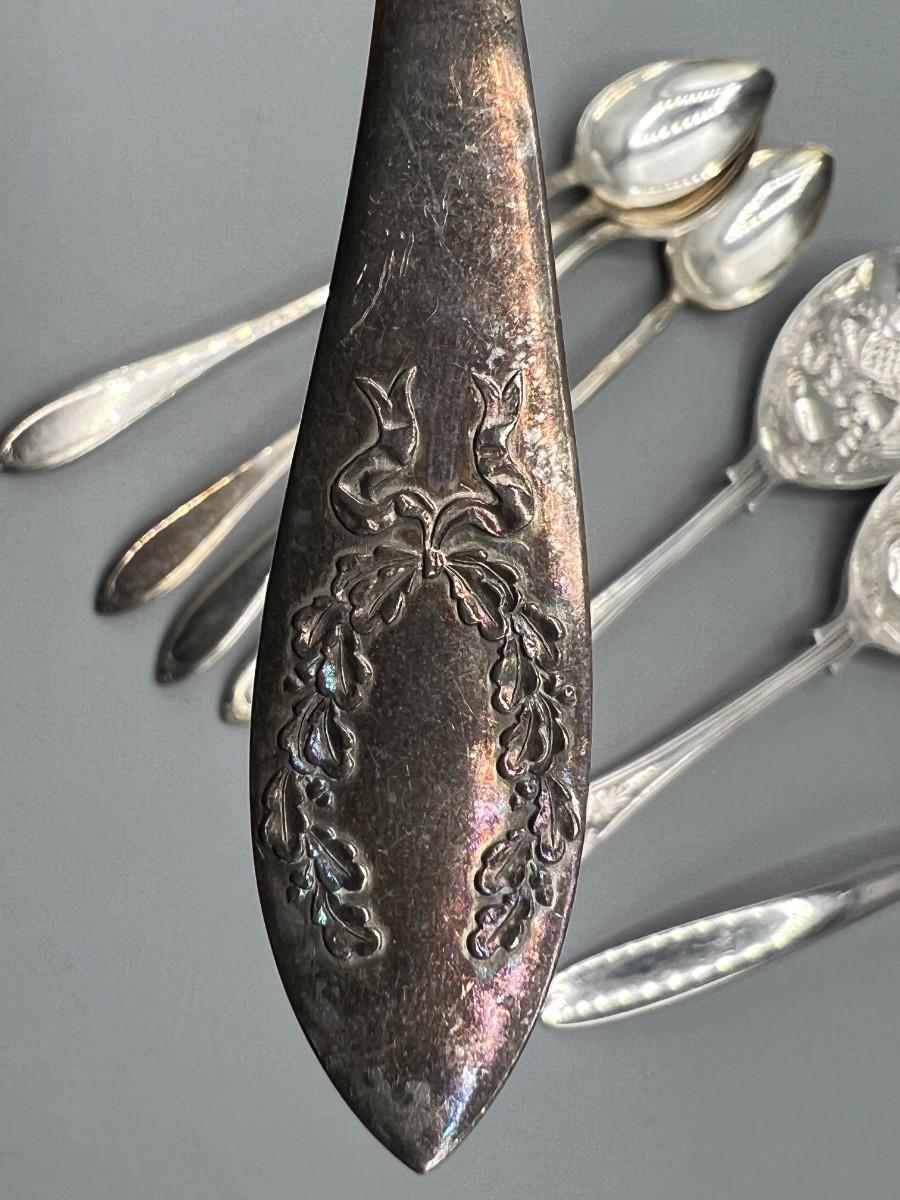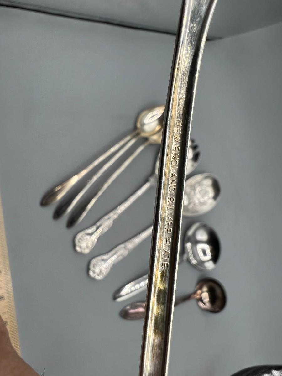 Vintage Mixed Lot of Silver Plate Serving Tongs Long Handle Teaspoons Ladle