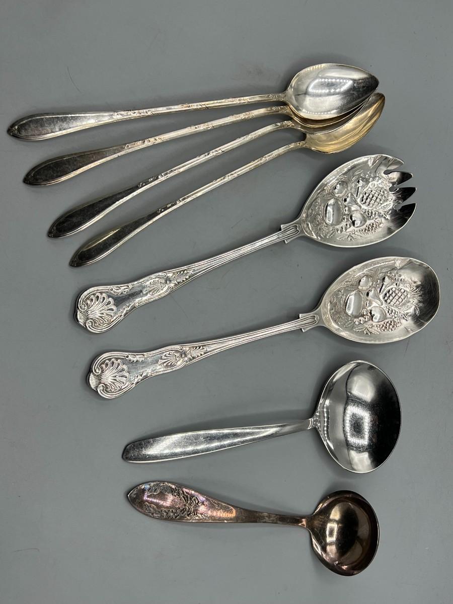 Vintage Mixed Lot of Silver Plate Serving Tongs Long Handle Teaspoons Ladle. All pieces are in good vintage condition.