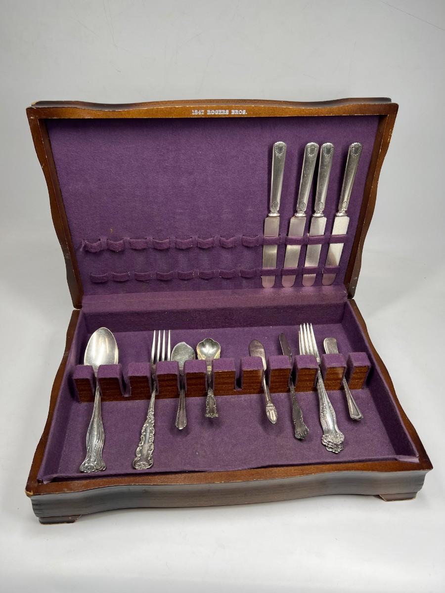 Vintage Lot of 1847 Rogers Bros & More Silverplate Dinnerware Cutlery with Storage Box