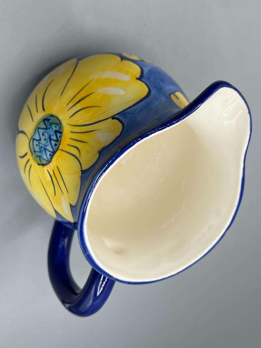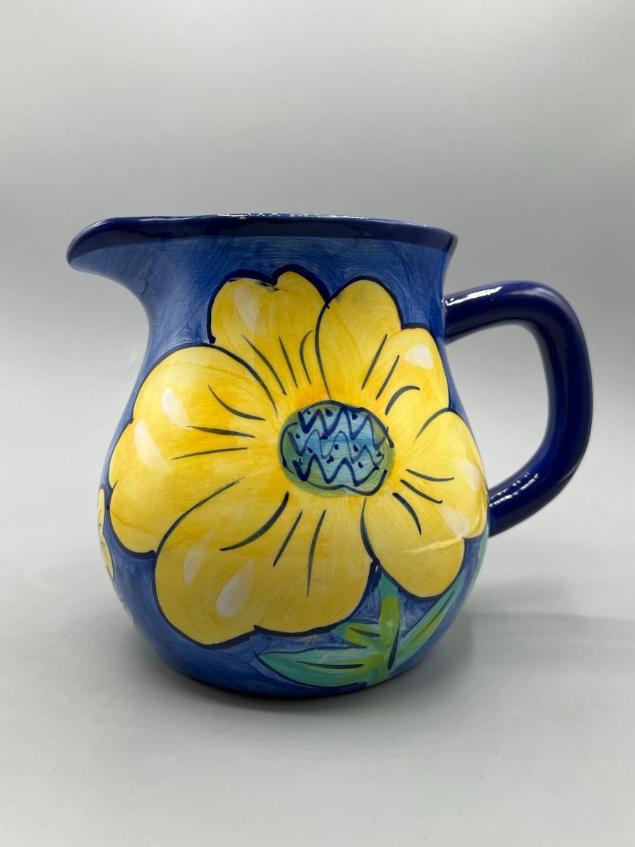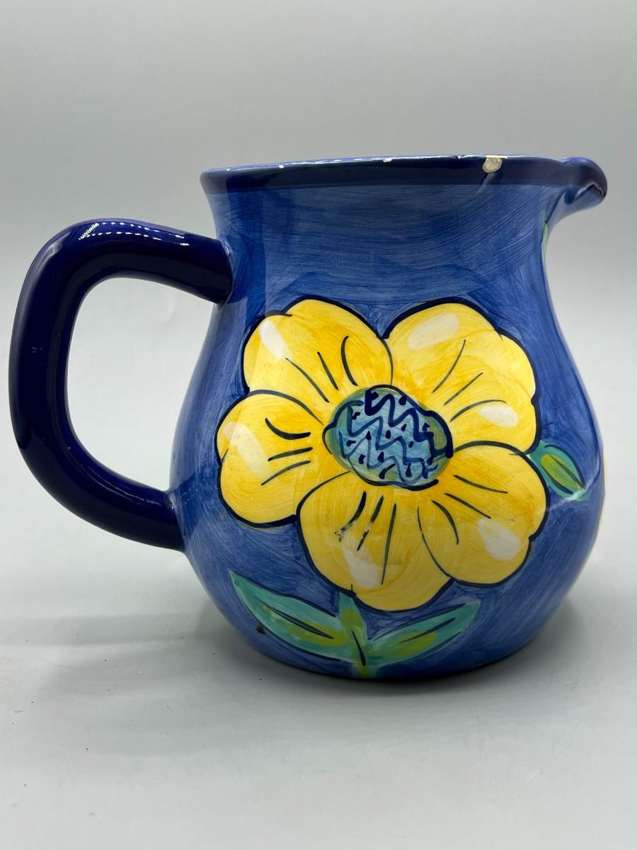 Hand Painted Yellow Flower Folk Art Style Ceramic Pitcher