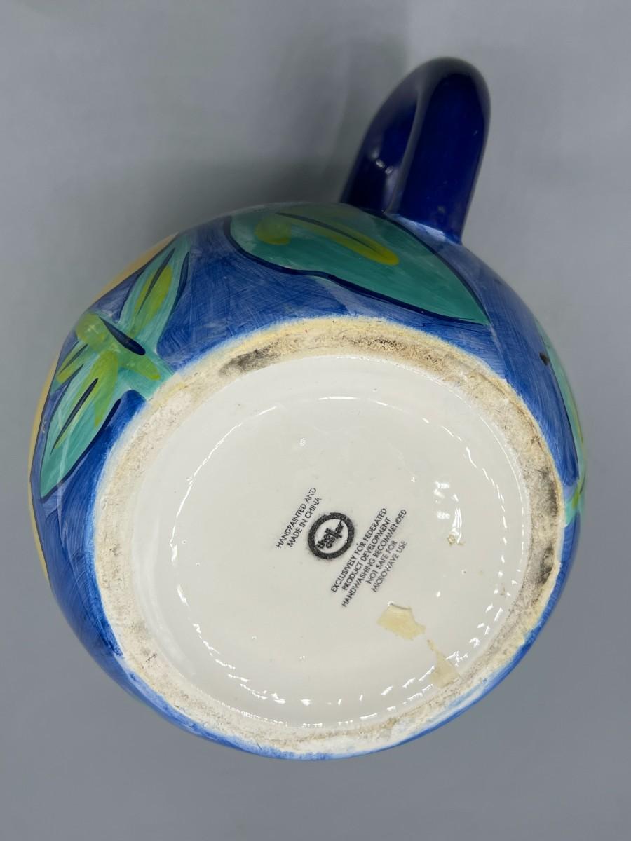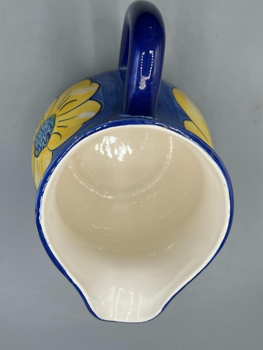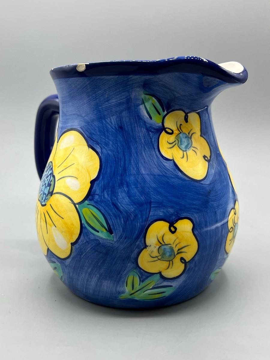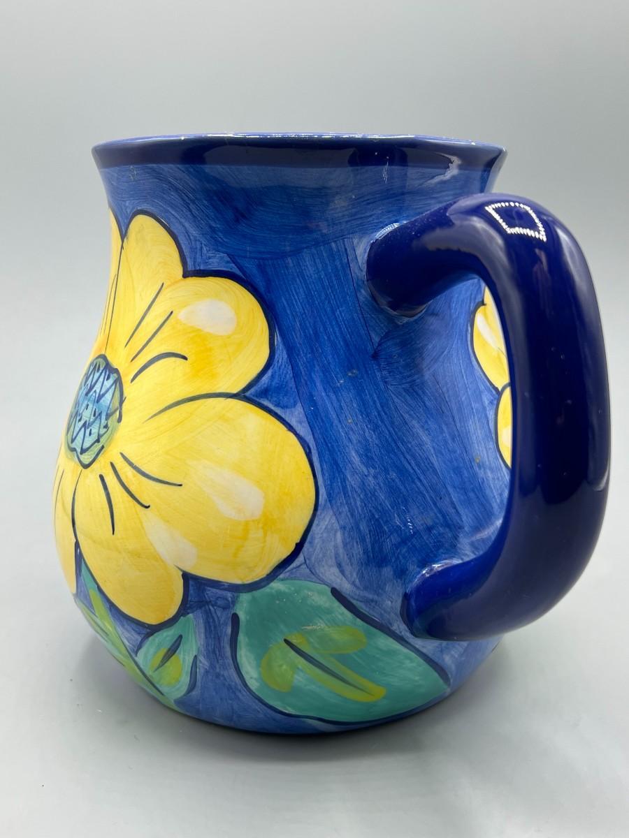 Hand Painted Yellow Flower Folk Art Style Ceramic Pitcher