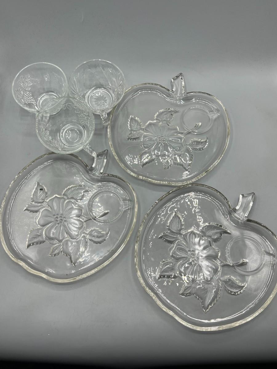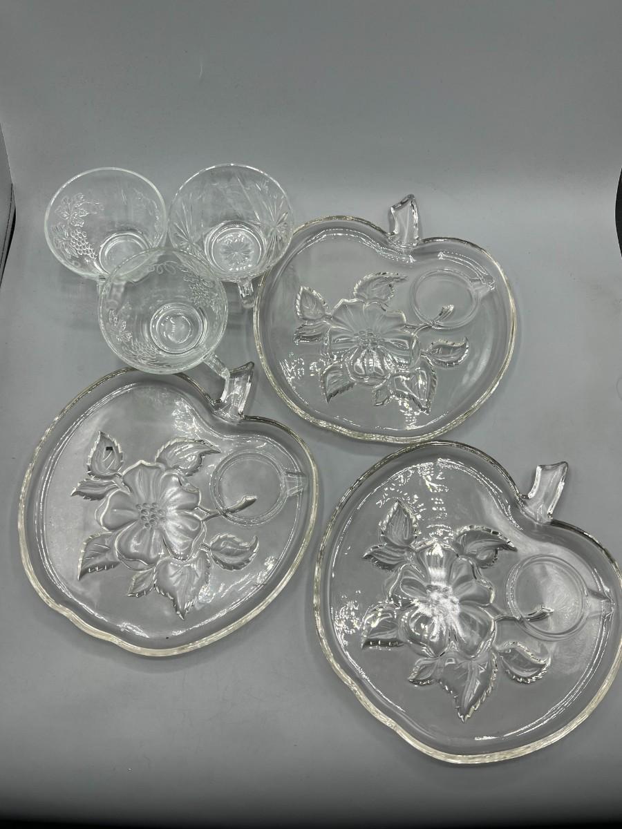 Lot of Mismatched Retro Hospitality Snack Set Apple Plates, Grape Vine Cups, & More