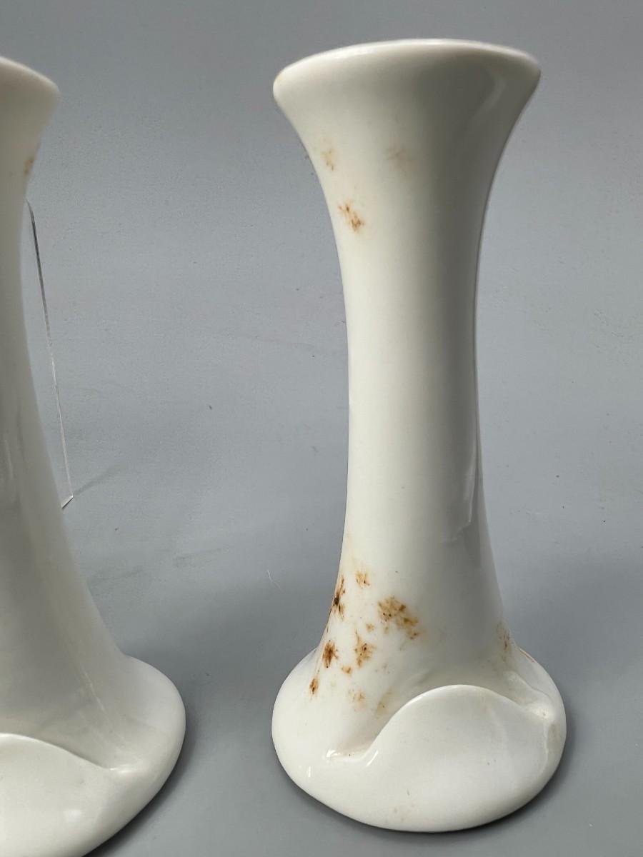 There is some vintage wear to the vases, but there is no significant damage and is in overall good collectible or displayable condition. Check pictures for more details and for sizing.