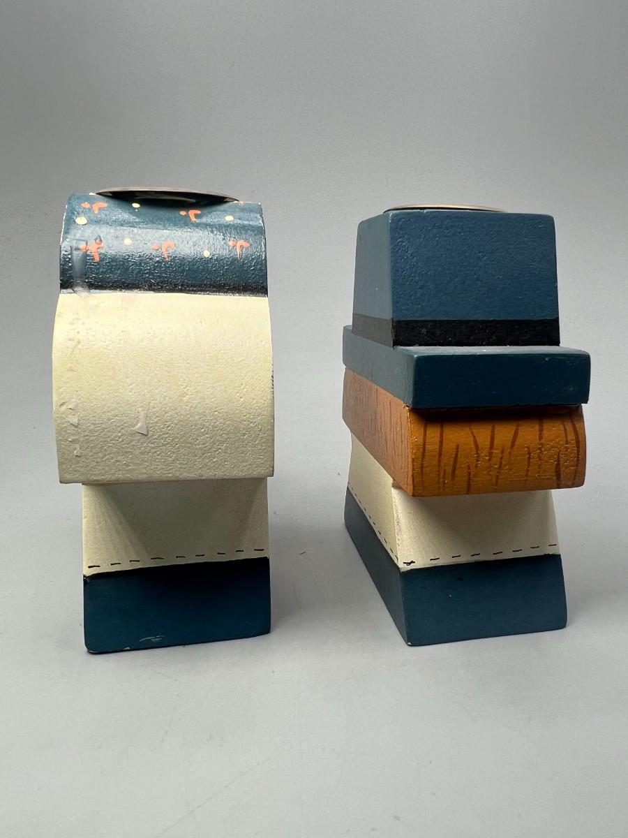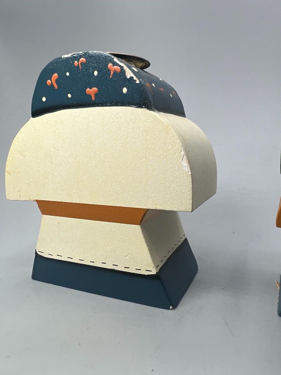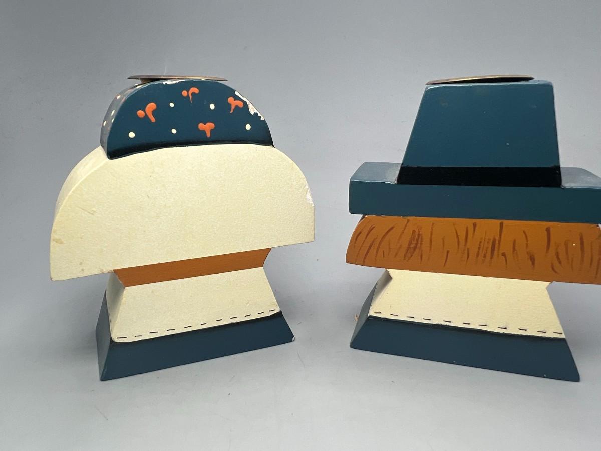 Retro Wooden Painted Praying Pilgrims Candlestick Holders