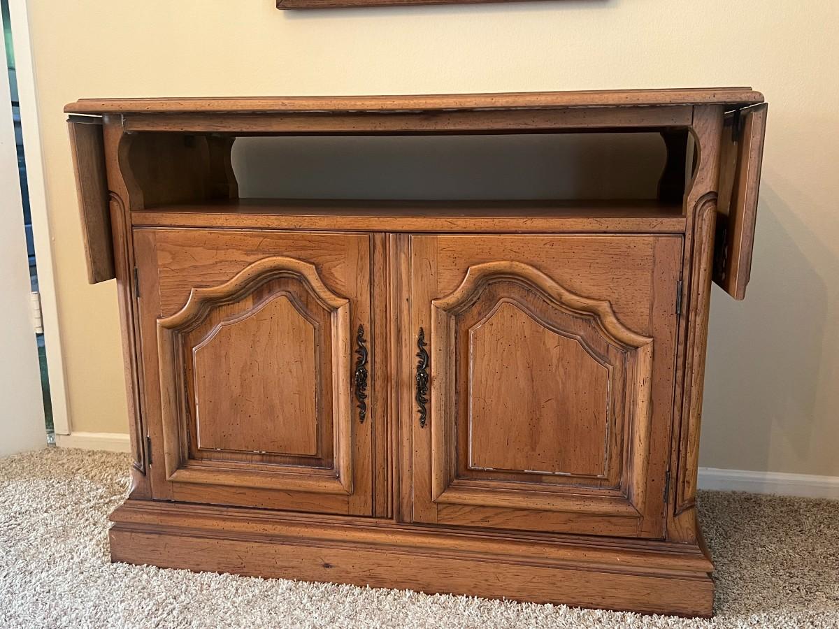 Thomasville Vintage Side Cabinet / Buffet French Provincial Style Mid Century Sideboard Decorative Light Walnut Wood