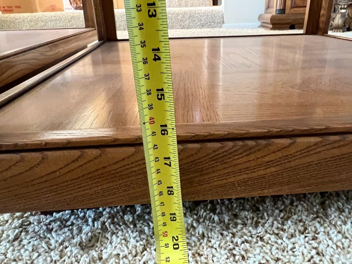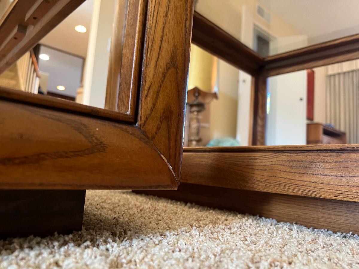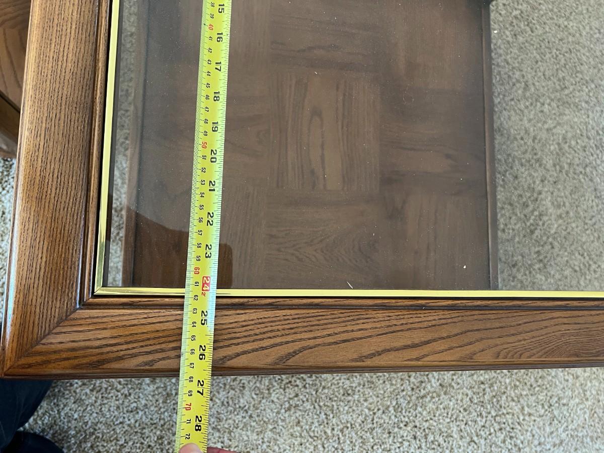 There is no significant damage to the glass or the wooden frame and is in overall good displayable and useable condition. Check pictures for more details and for sizing.