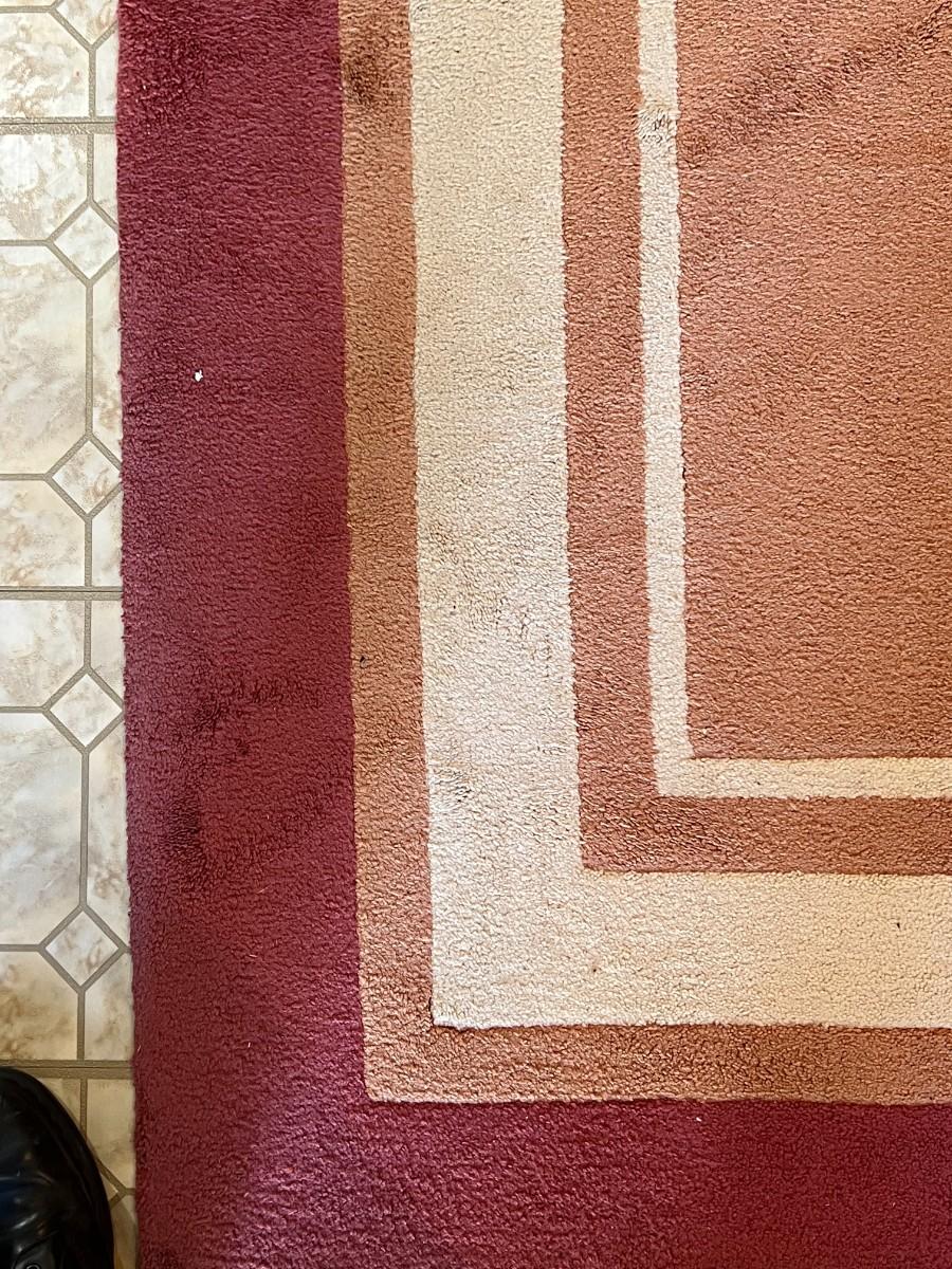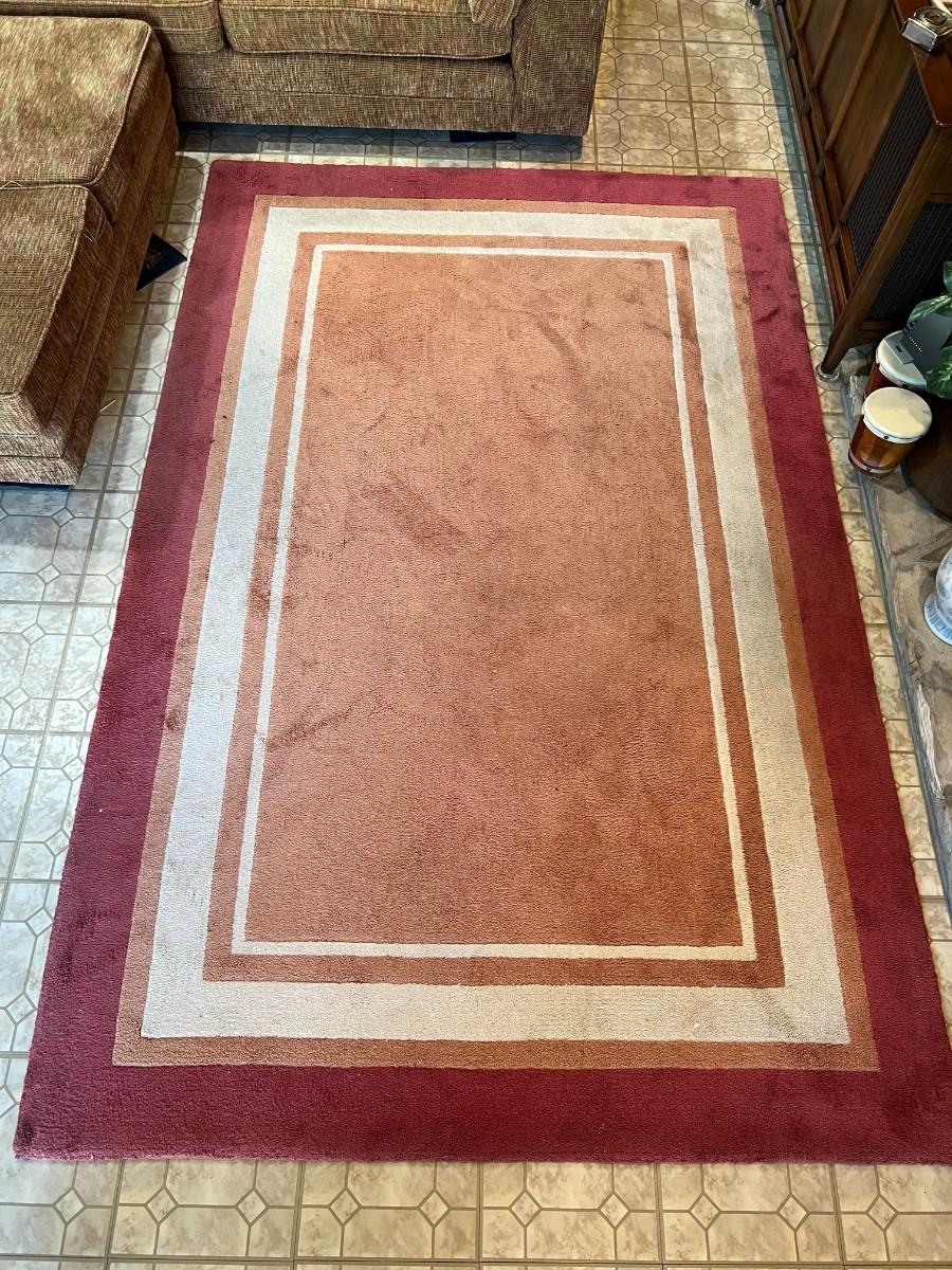 There are signs of use to the rug, but there is no significant damage and is in overall good displayable or useable condition. Check pictures for more details and for sizing.