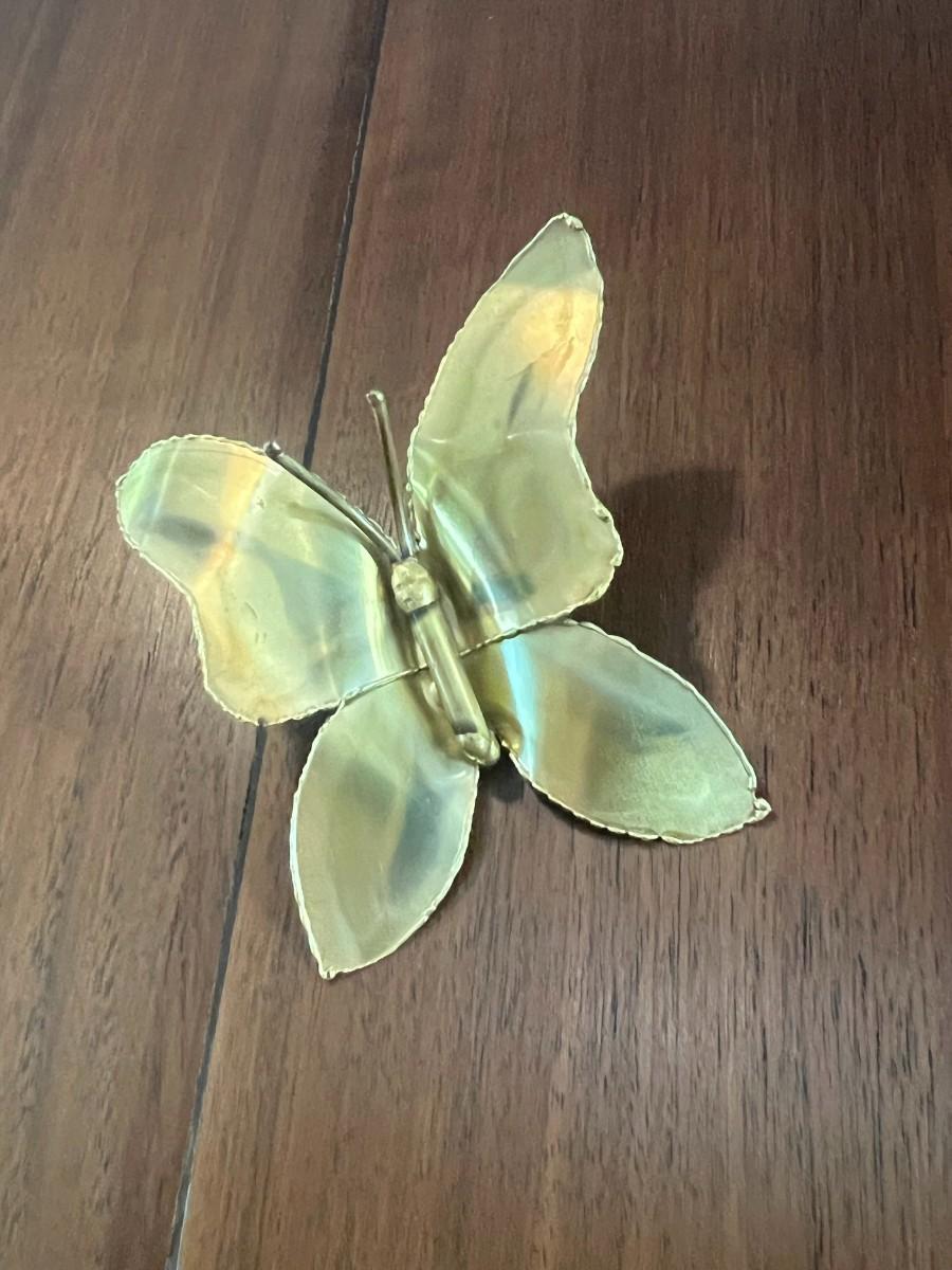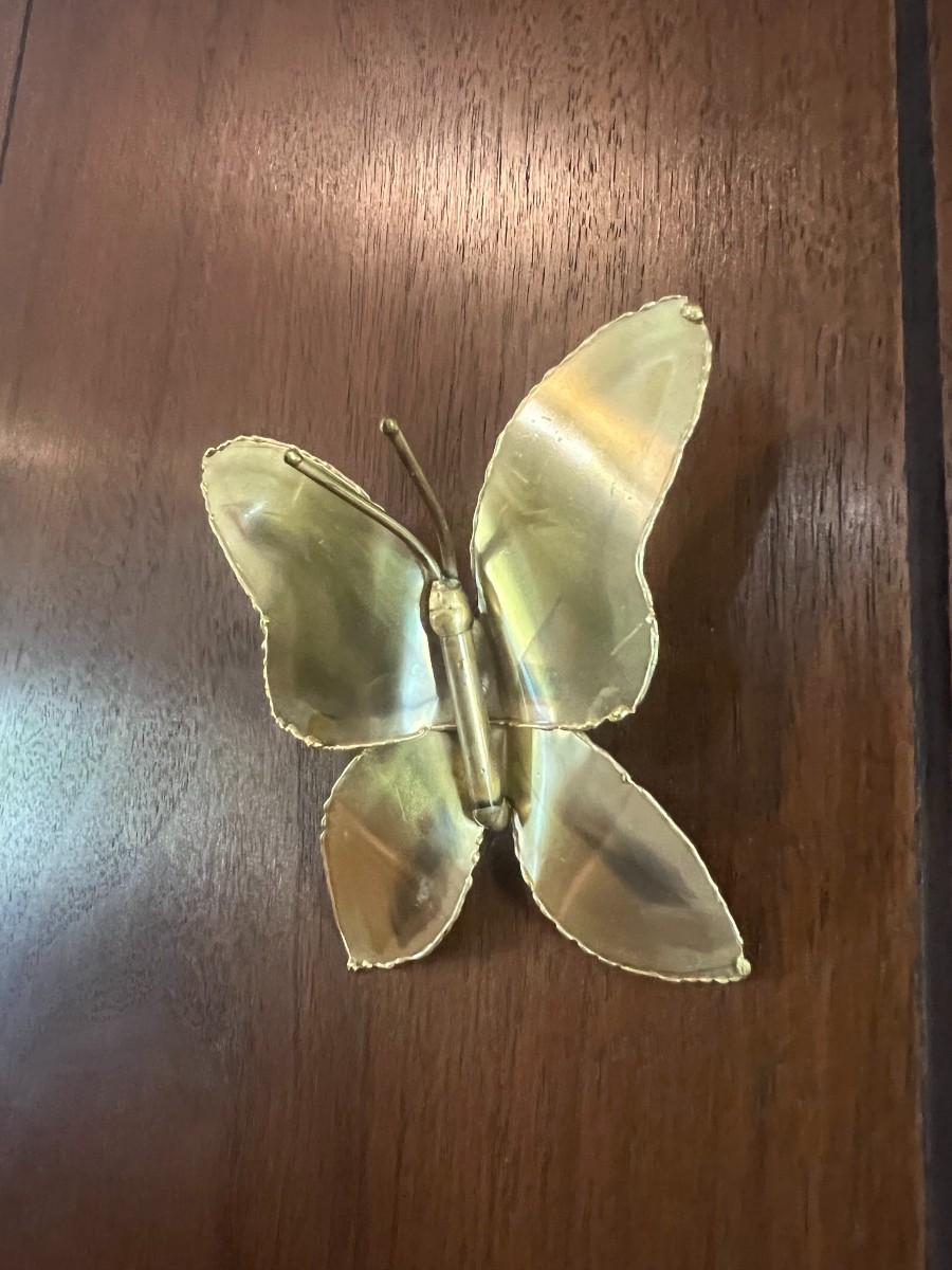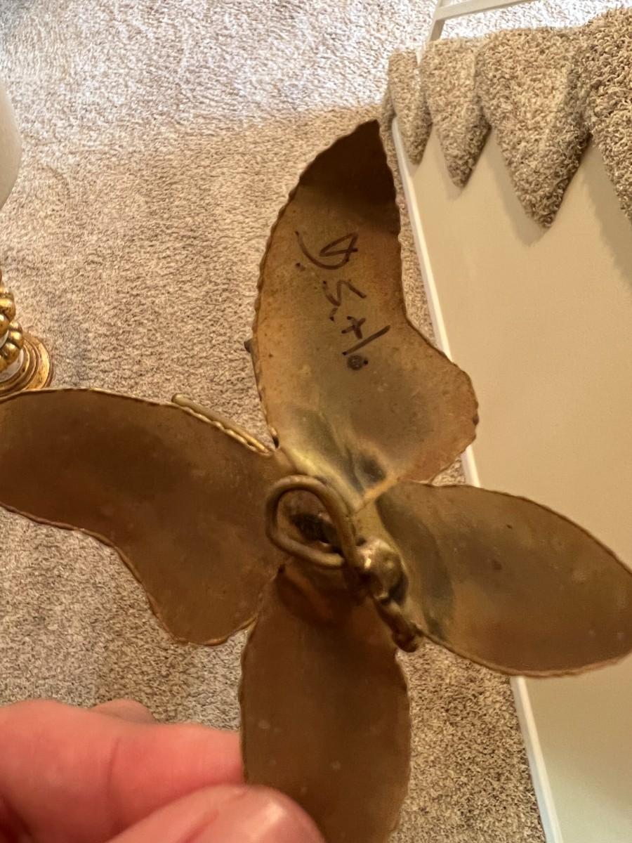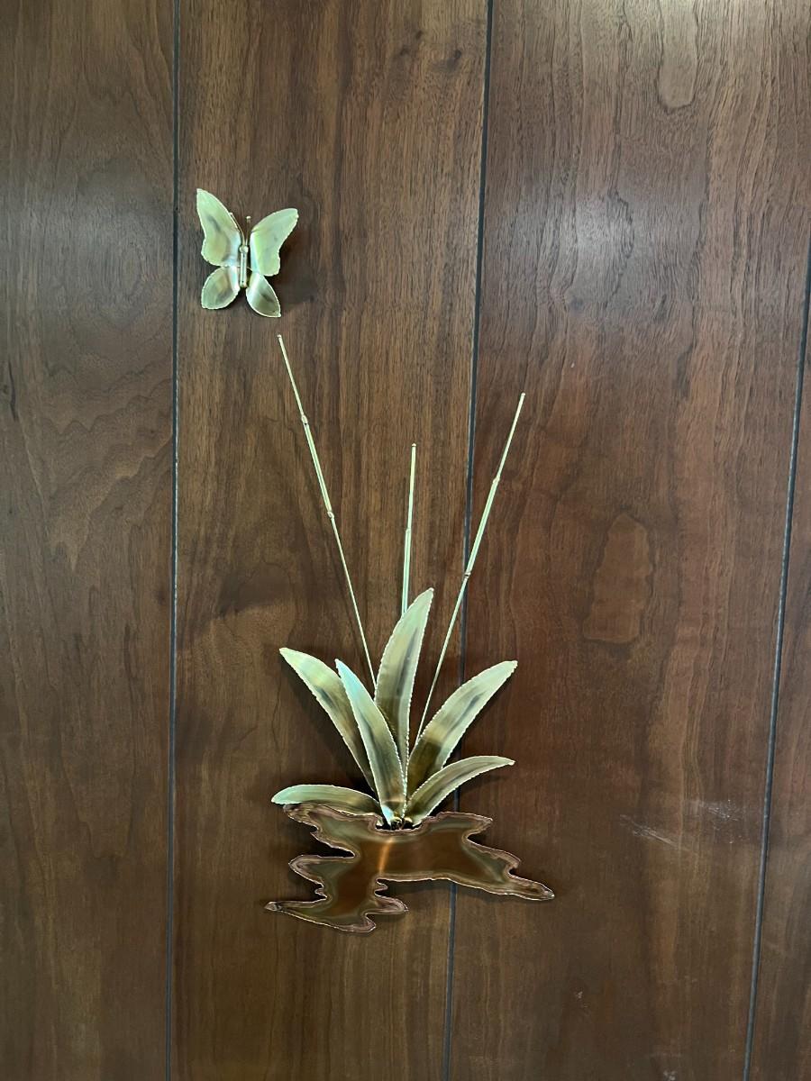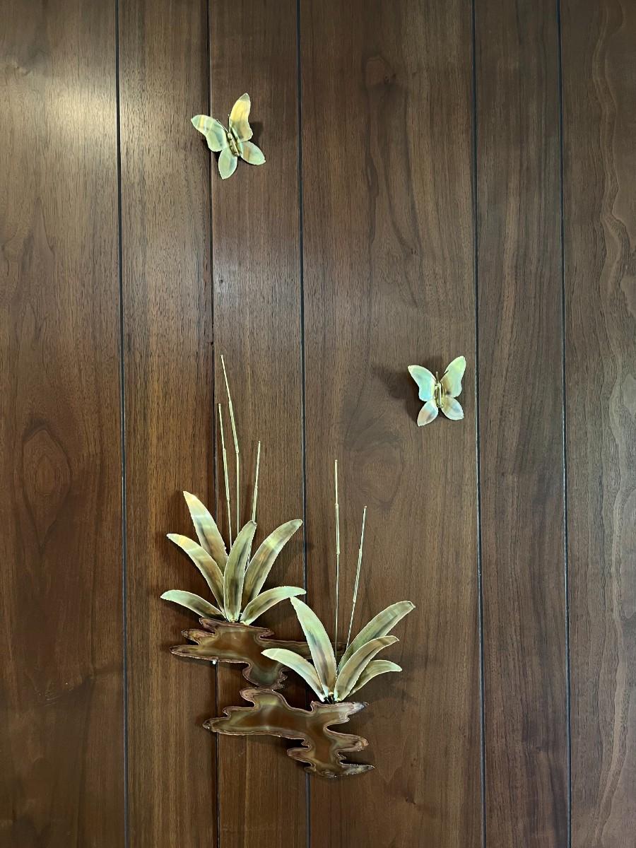 Vintage D.S. Hulbert Sculpted Welded Brass Metal Artist Signed Butterfly Foliage Brutalist MCM Hanging Wall Art
