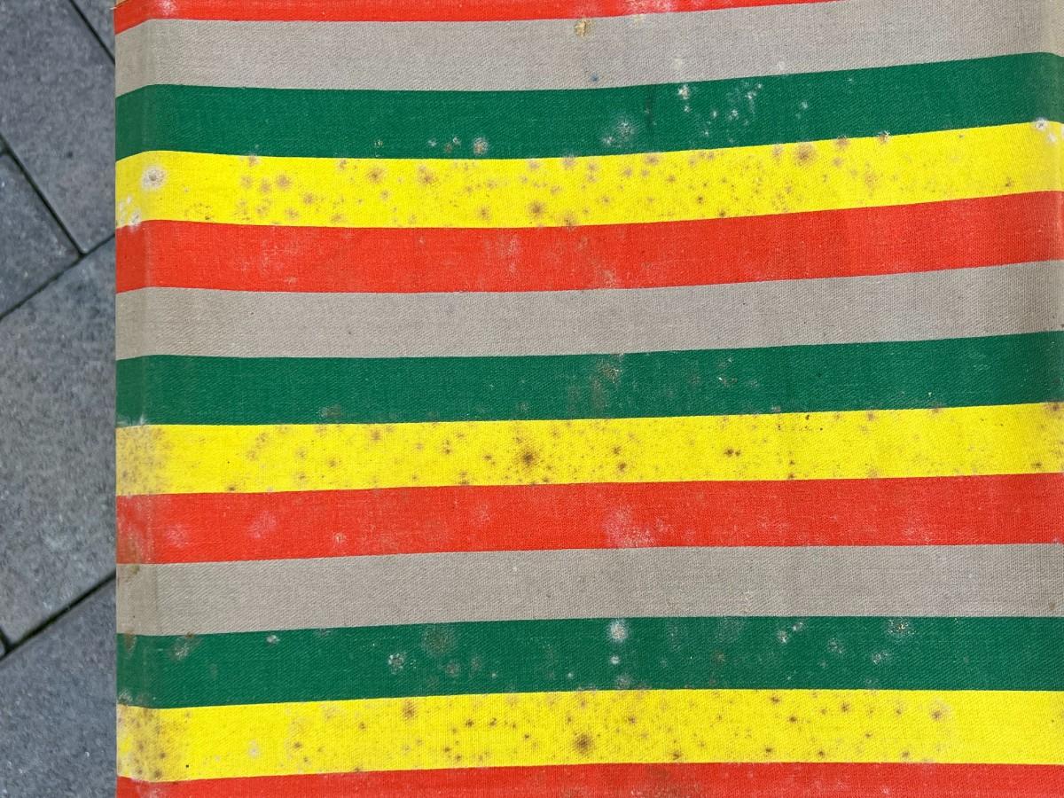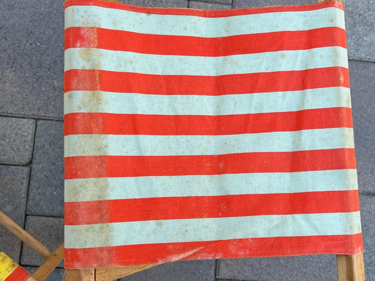 There are some sings of wear to the canvas seat material, but there is no significant damage and is in overall good collectible or useable condition. Check pictures for more details and for sizing.