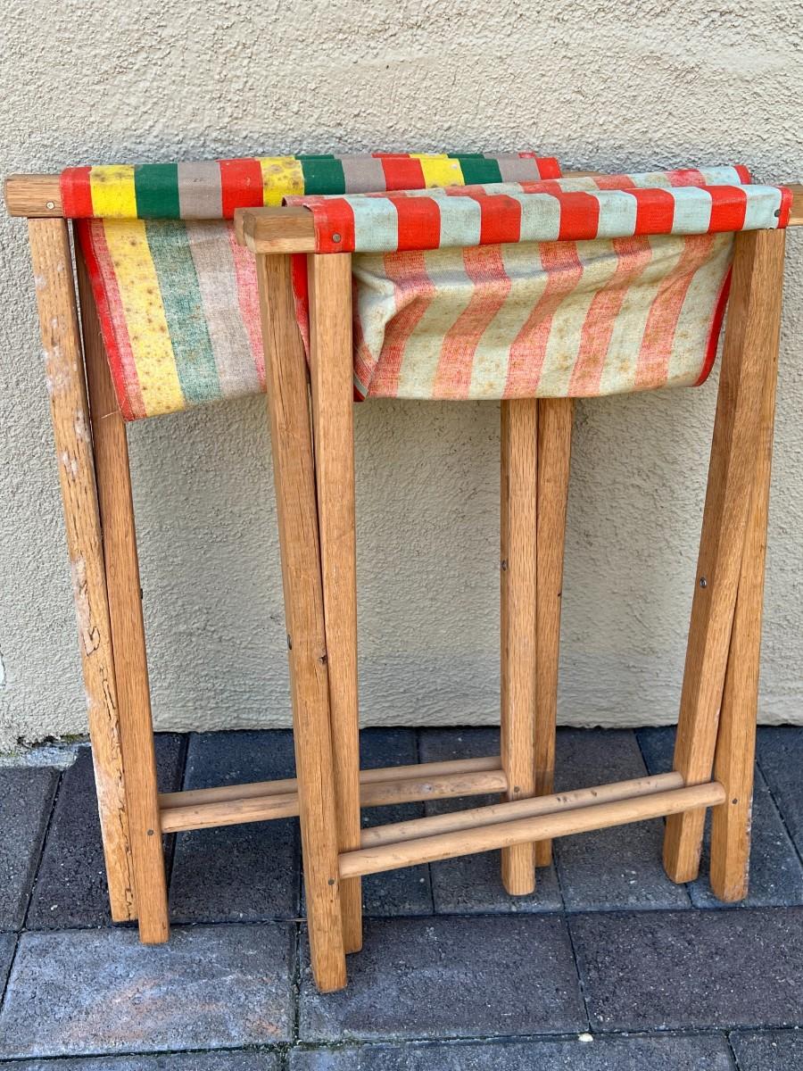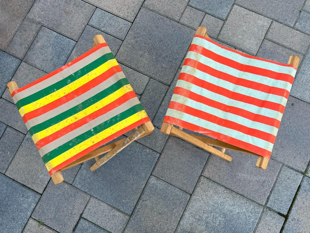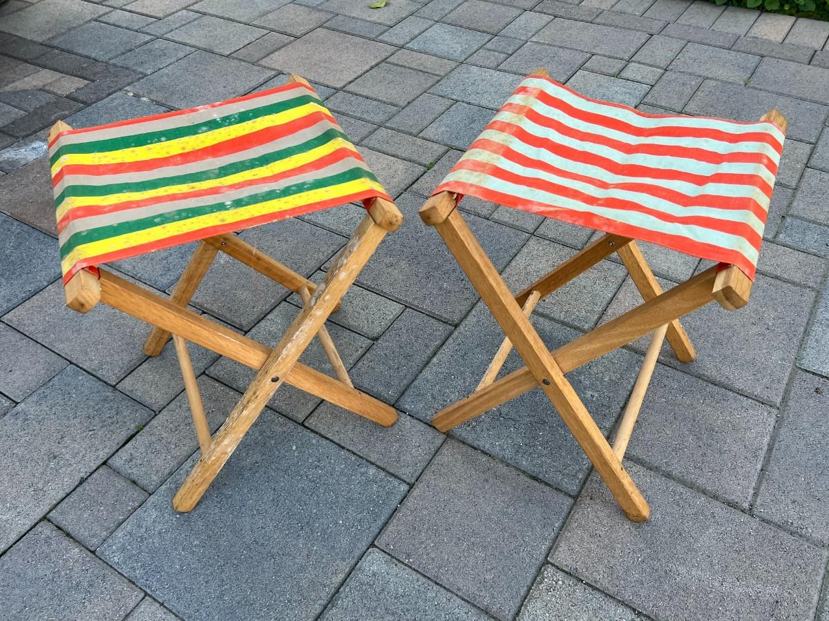 Pair of Vintage Folding Canvas Outdoor Picnic Park Beach Stool